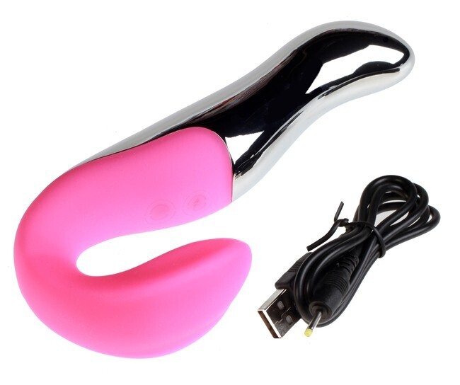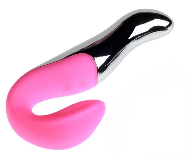 Вибратор перезаряжаемый с двумя моторами, 7 режимов, двойная стимуляция, 17,5 см, серебристо-розовый