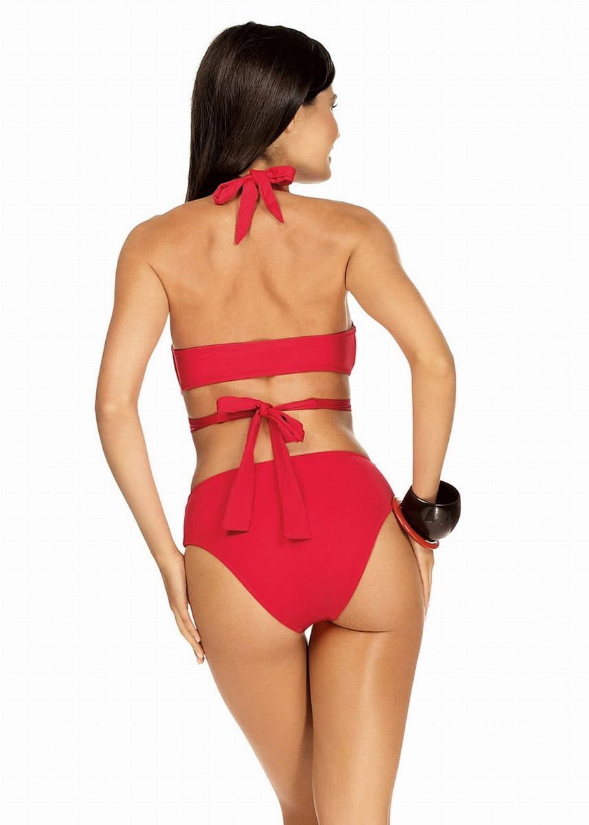 Купальник состоит из лифа и трусиков, которые идеально сочетаются друг с другом. Лиф фиксируется широкими завязками на шее и имеет боковые вертикальные пластины для лучшей поддержки. Широкая бретель на спине и перекрещивающиеся завязки между чашками добавляют стильный акцент и обеспечивают надежную посадку. Трусики с высокой линией талии выполнены на стрейч-подкладке, что делает их удобными для ношения.