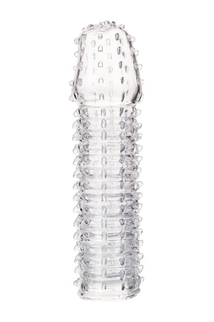Прозрачный цвет делает насадку максимально незаметной, а рифлёная поверхность усиливает ощущения. Материал TPR безопасен, гипоаллергенен и приятен на ощупь.