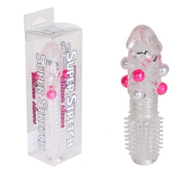 Насадка на пенис 'Super Stretch', 14 см, прозрачная, силиконовая, удлиняет на 2.5 см