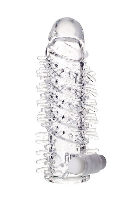 Насадка с вибромассажером и шипами, эластичный TPR, 14 см, прозрачная, для пар