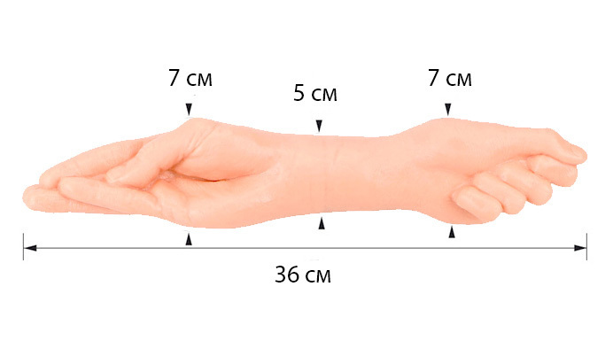 Стимулятор для фистинга двусторонний, реалистичная форма руки, ПВХ, телесный, 36х7 см