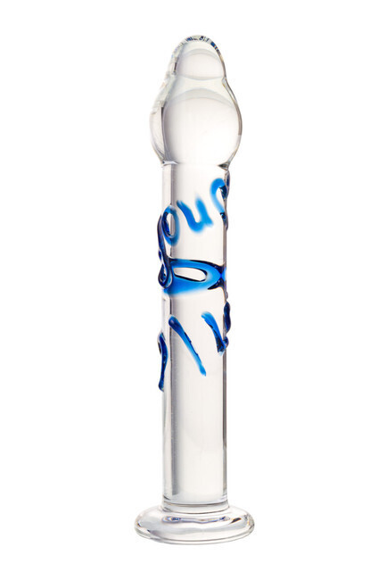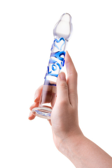 Стимулятор из стекла 'Love', длина 19,5см, диаметр 2,5-3,5см, прозрачный с синим