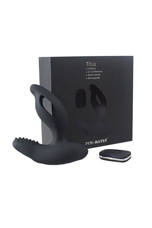 Стимулятор простаты «Titus» с пультом ДУ, тройная стимуляция, 11 режимов вибрации, силикон, 13 см, черный