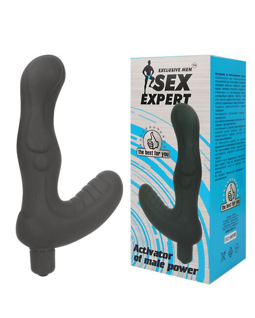 Стимулятор простаты «Sex Expert» с вибрацией, двойной массажер, 10 см, диаметр 3 см, силикон, черный