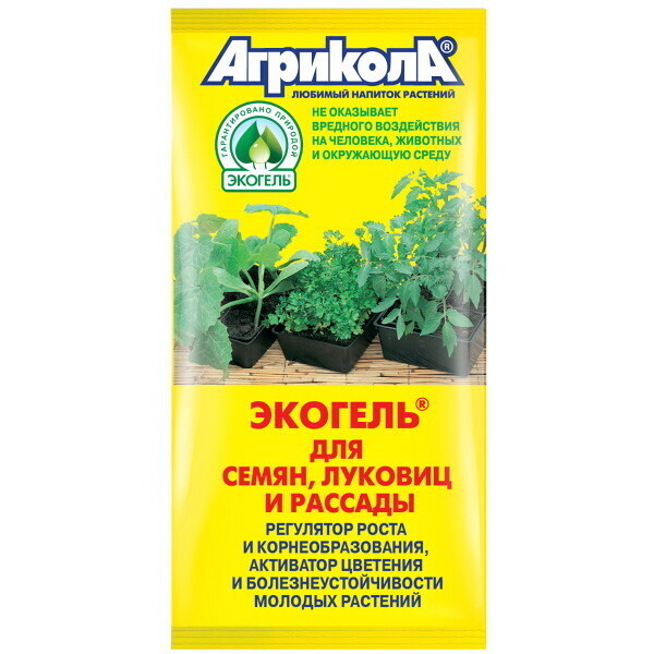 Стимулятор подходит для всех видов овощных, зеленых, декоративных и цветковых культур. Для использования просто разведите один пакетик (20 мл) в одном литре воды и замачивайте семена до начала их проклевывания. Экогель также можно использовать для обработки клубней и луковиц, что значительно улучшает их приживаемость и развитие.