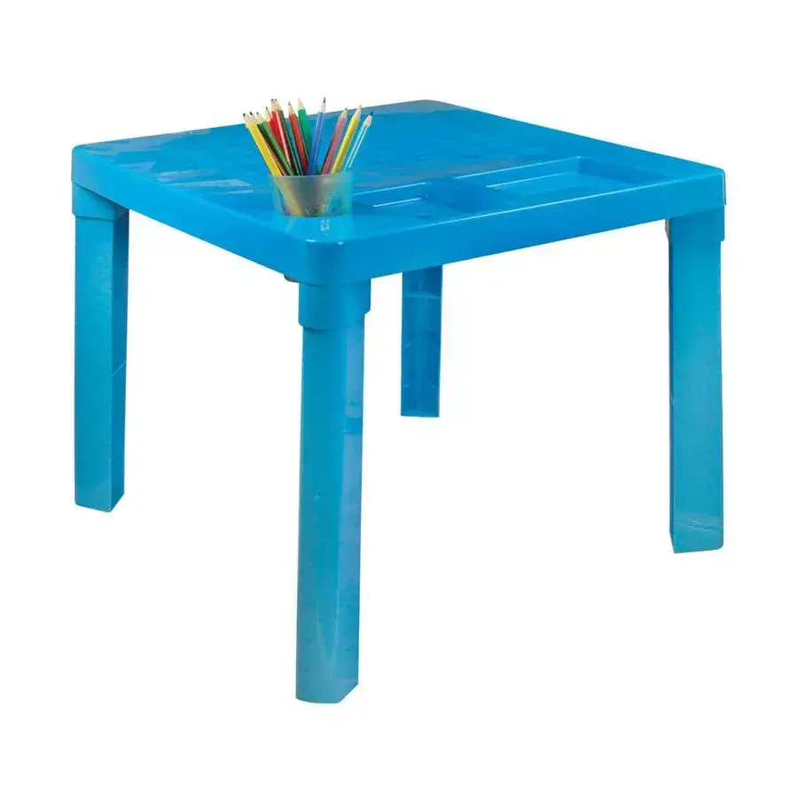 Столы изготовлены из прочного пластика, устойчивого к ударам и царапинам. Прямые ножки обеспечивают стабильность даже при активном использовании. Гладкая поверхность легко очищается от красок и пластилина.