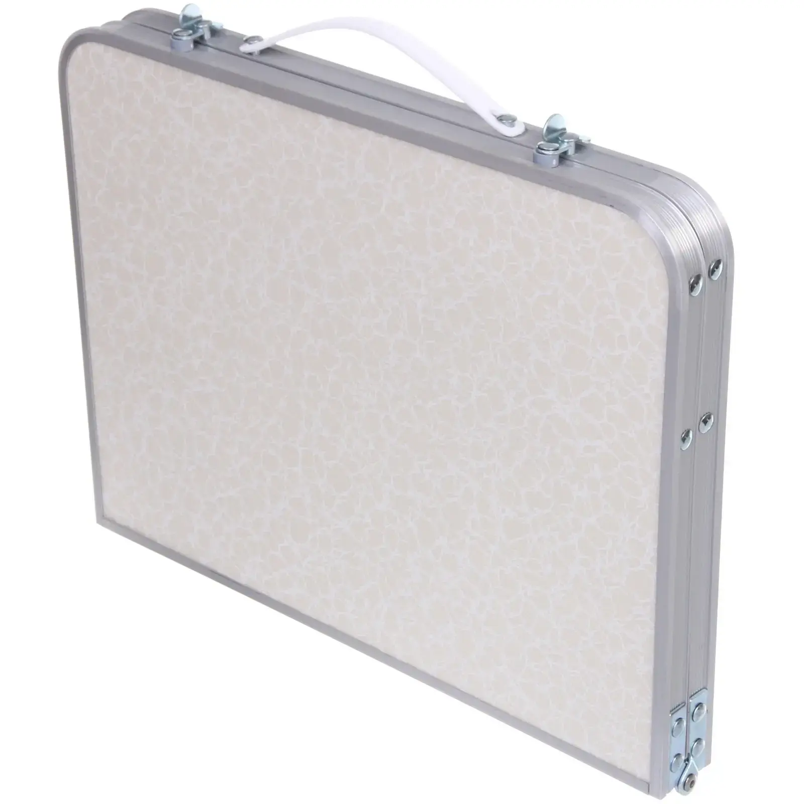 Стол имеет компактные размеры и складывается, что позволяет удобно хранить его в автомобиле или на даче. Его светлая столешница с текстурой добавляет эстетики и стиля, а закругленные углы обеспечивают безопасность при использовании. Этот стол станет незаменимым атрибутом вашего активного отдыха!