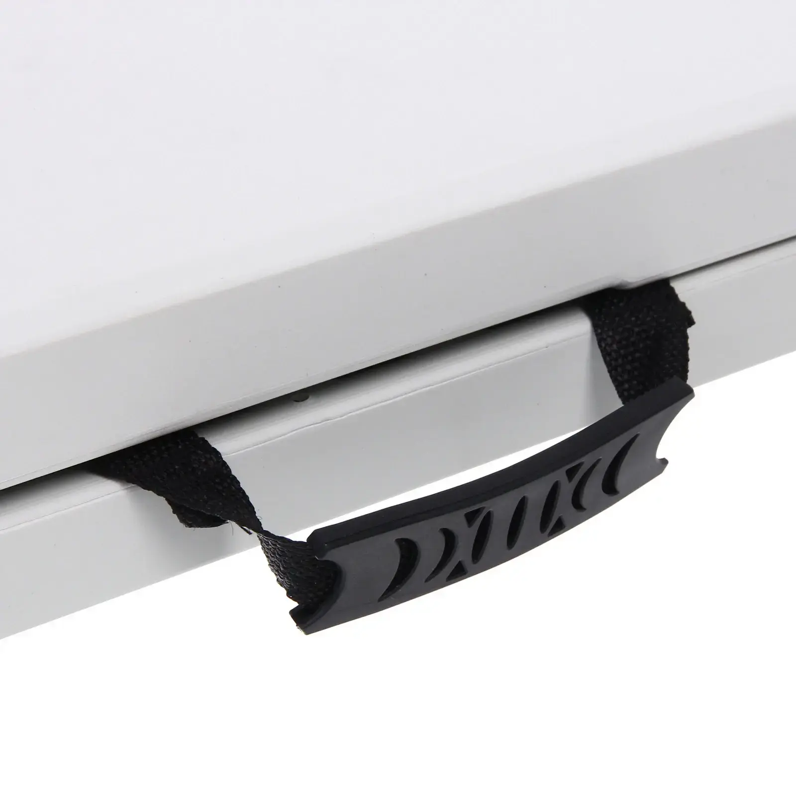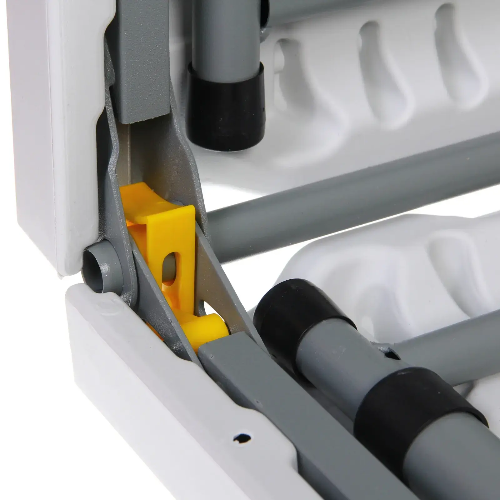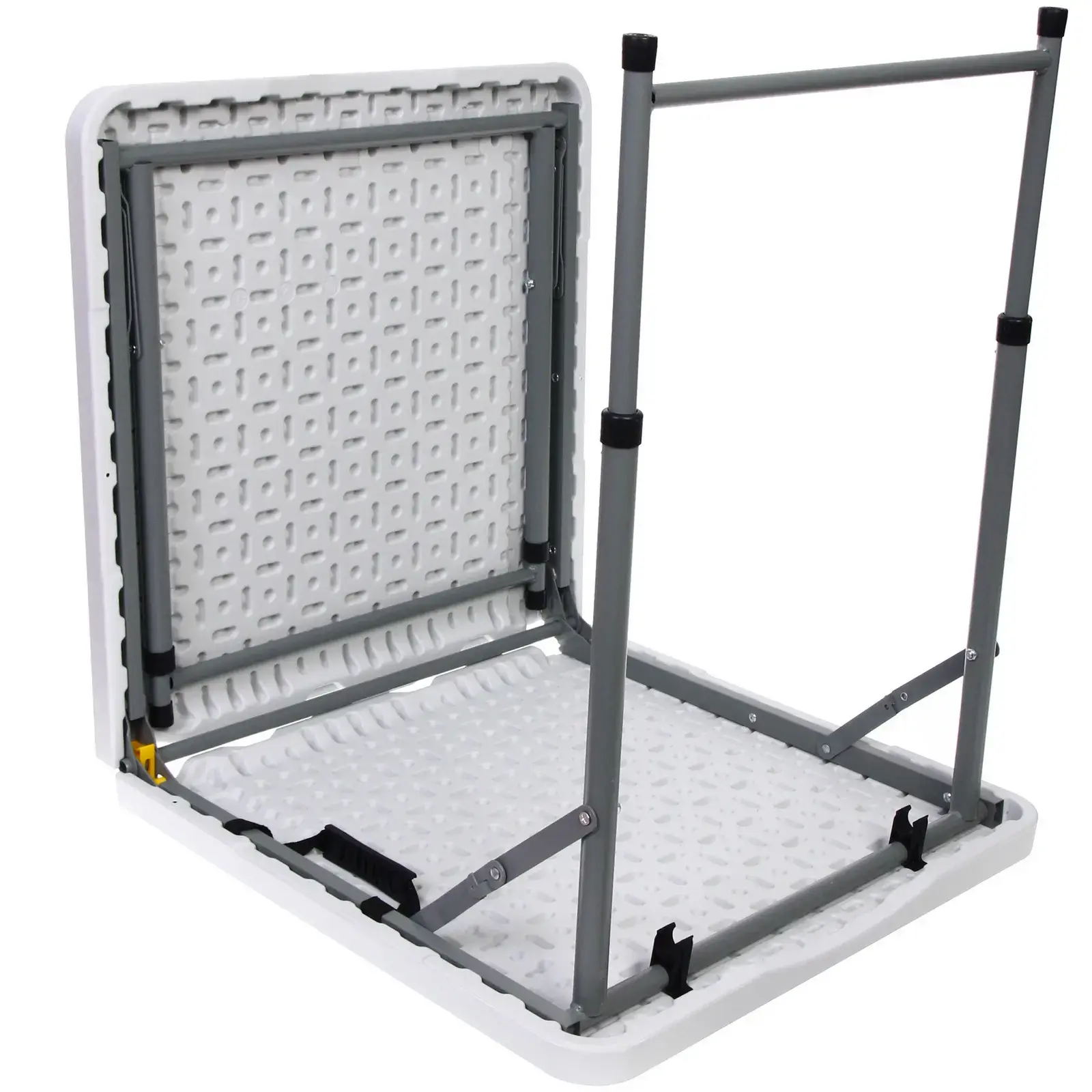 Почему стоит выбрать именно этот стол? Во-первых, его прочная металлическая конструкция обеспечивает надежность и долговечность. Во-вторых, столешница выполнена из качественного пластика, что делает его устойчивым к внешним воздействиям. Наличие ручки для переноски добавляет удобства при транспортировке, а легкий вес позволяет легко перемещать стол даже одному человеку.