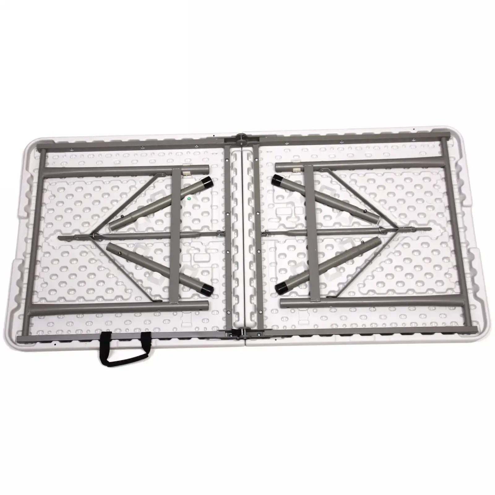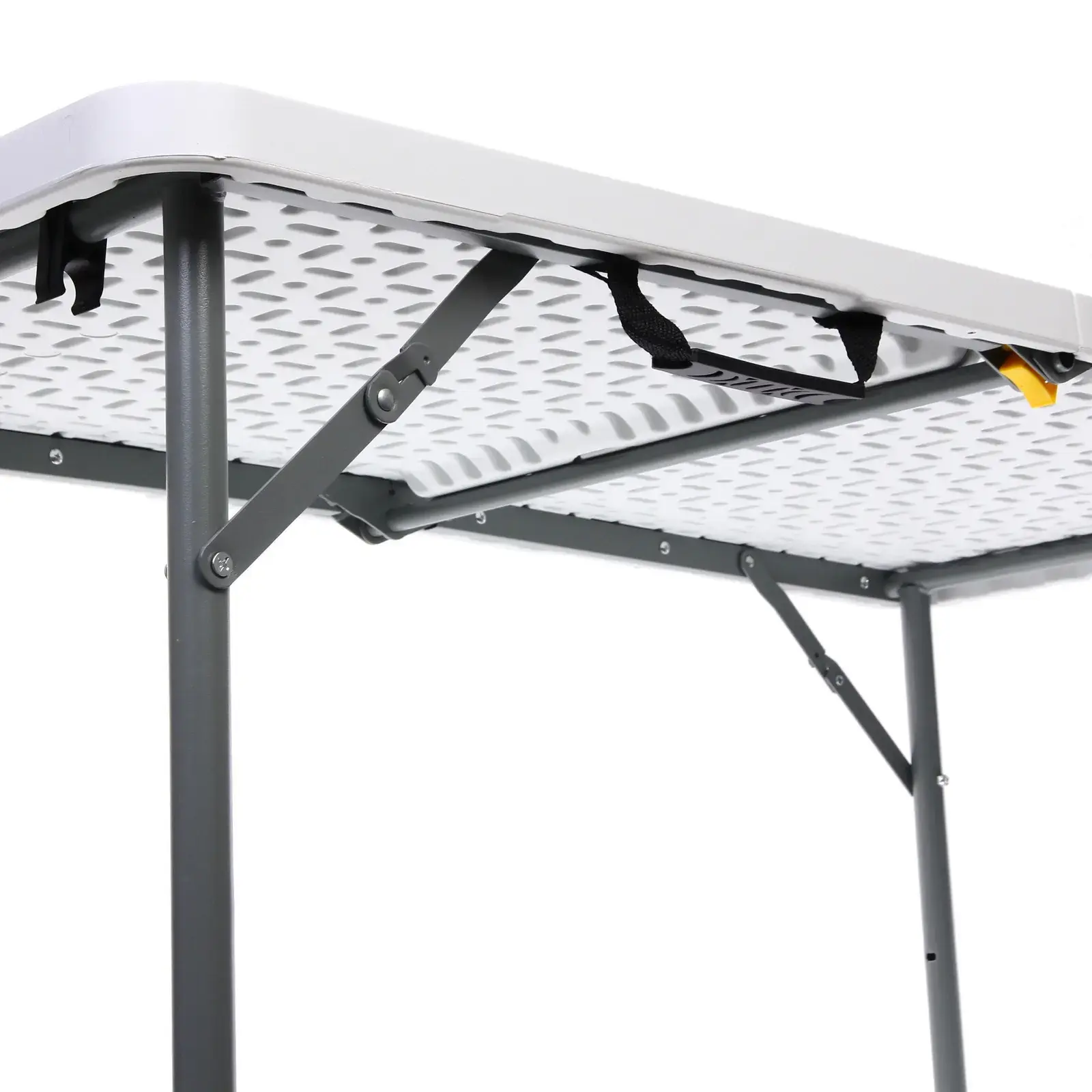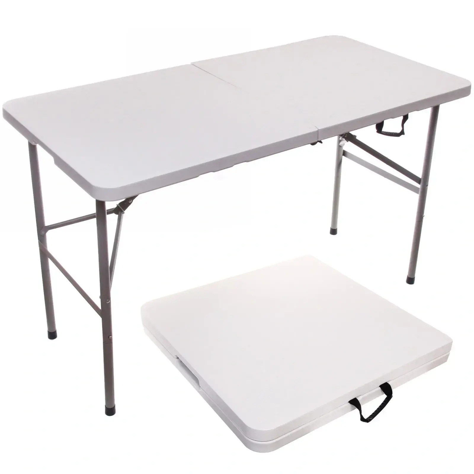 Почему стоит выбрать именно этот стол? Во-первых, его прочная металлическая конструкция обеспечивает надежность и долговечность. Во-вторых, столешница выполнена из качественного пластика, что делает его устойчивым к внешним воздействиям. Наличие ручки для переноски добавляет удобства при транспортировке, а легкий вес позволяет легко перемещать стол даже одному человеку.