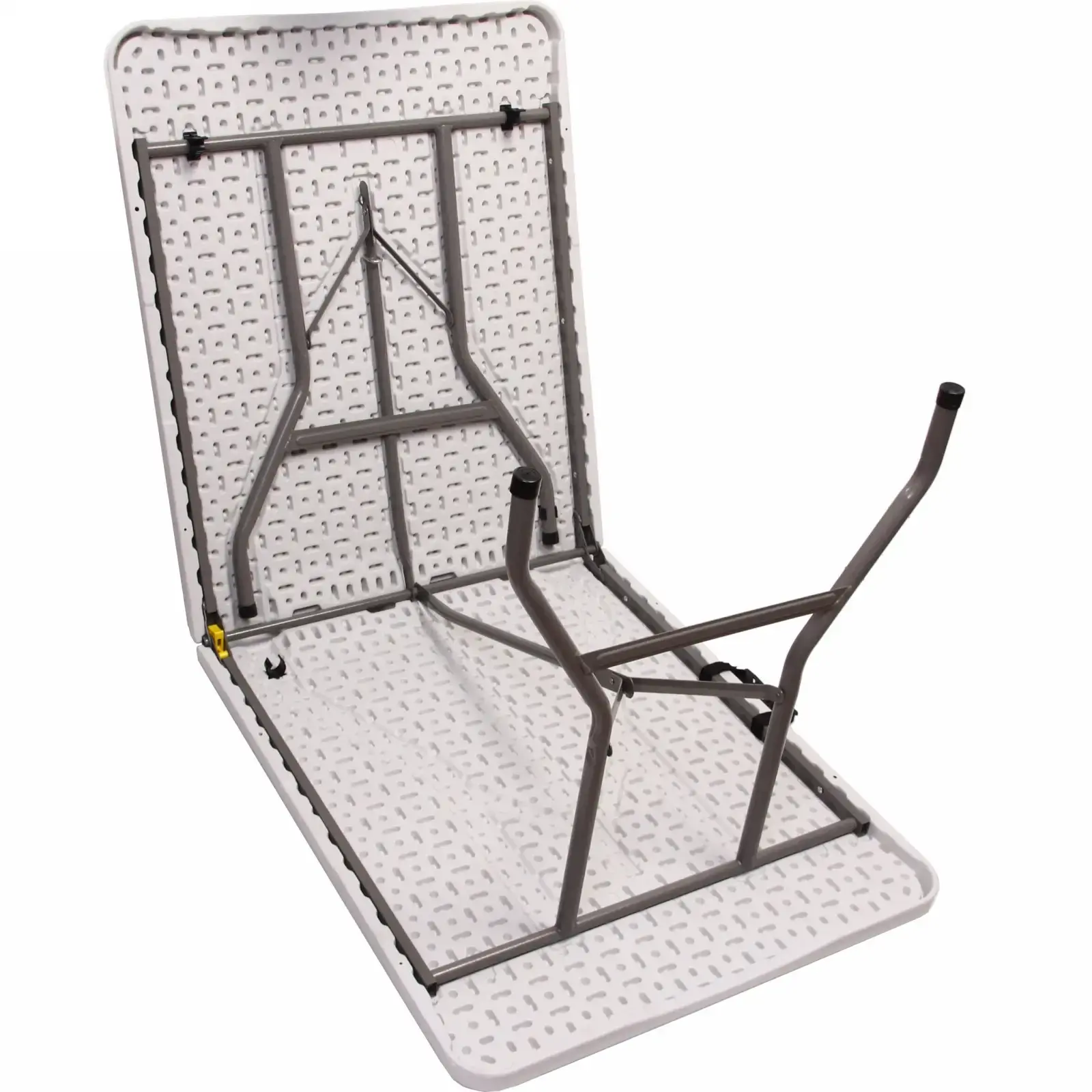 Стол подходит для использования как на природе, так и в домашних условиях. Его складная конструкция позволяет быстро разложить и собрать стол, что экономит ваше время. Благодаря прочному металлическому каркасу и гладкой белой столешнице, он легко выдерживает нагрузки и подходит для различных мероприятий.