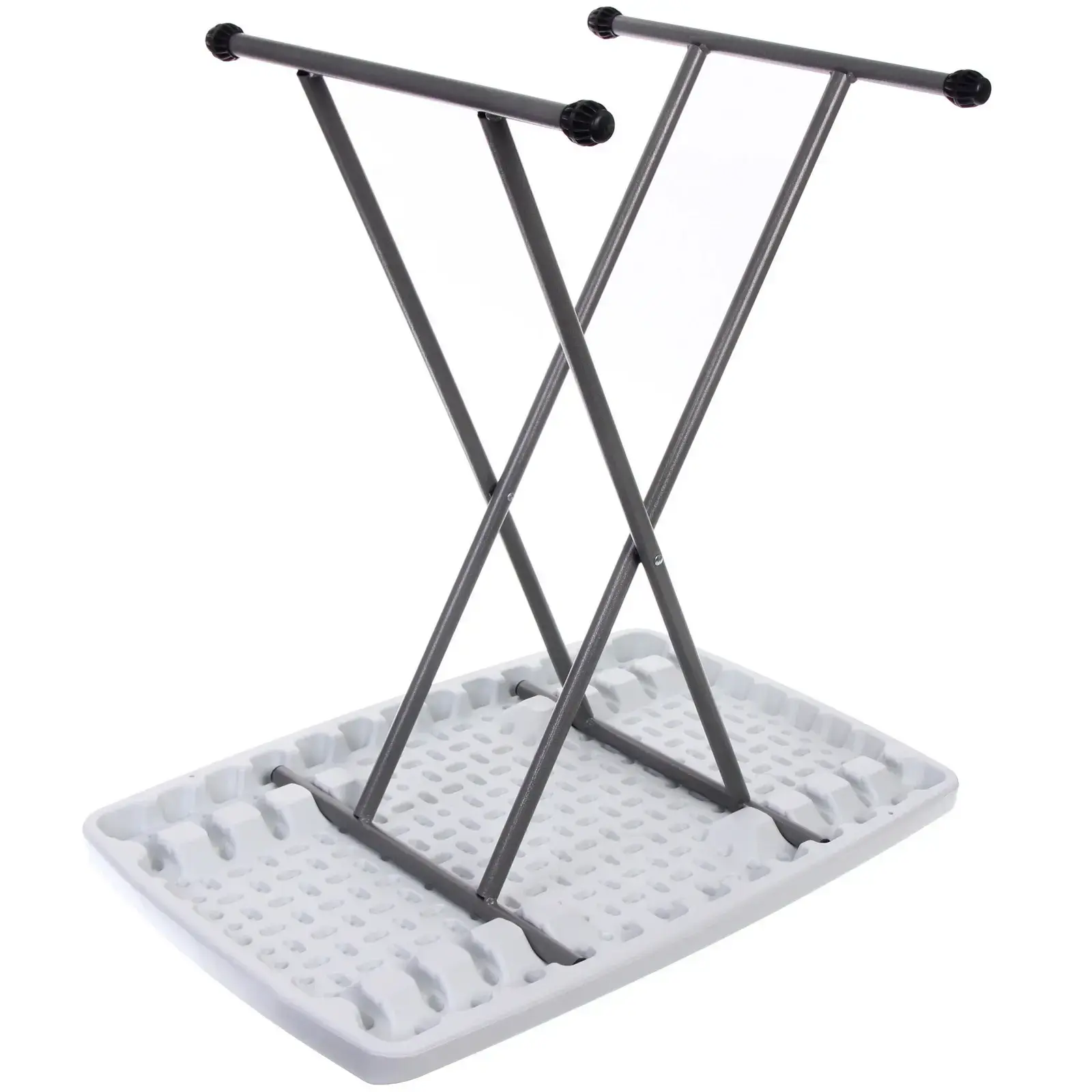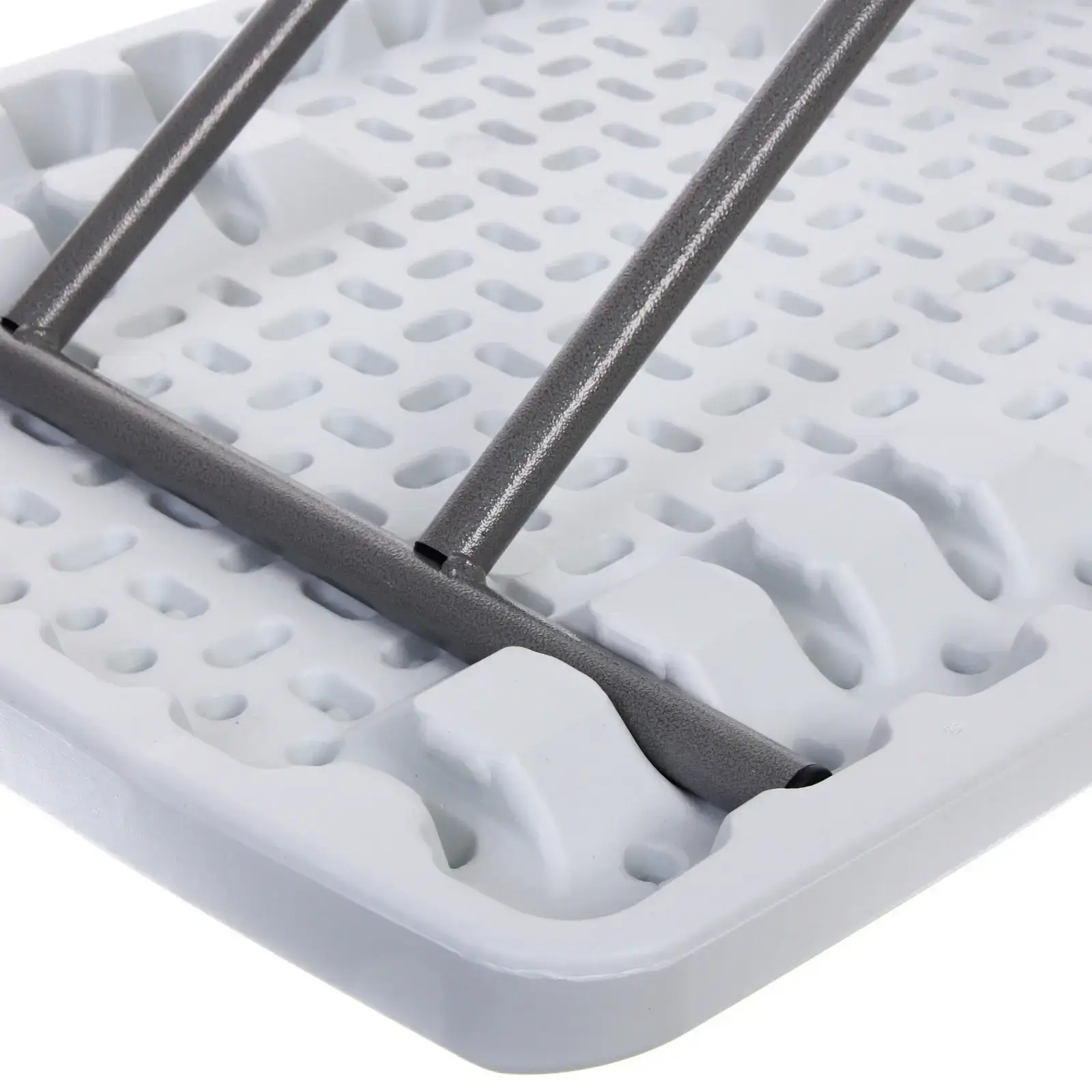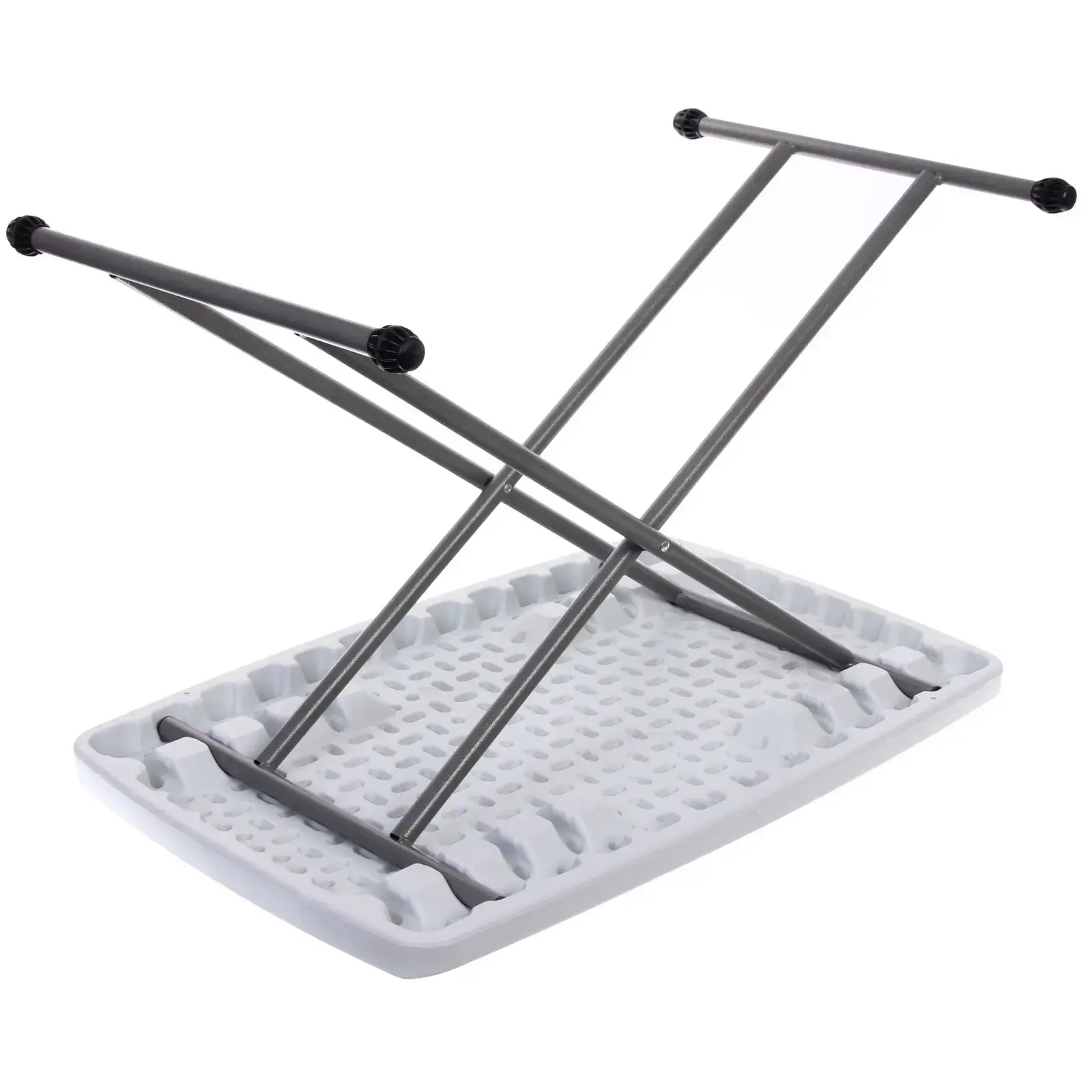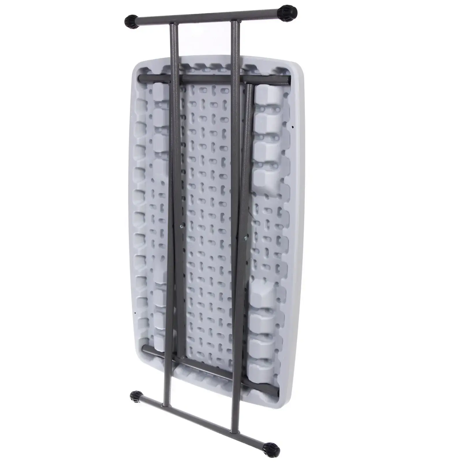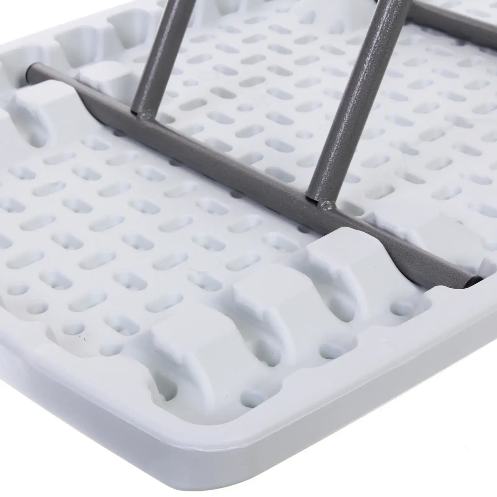 Складной стол KL-75 отличается высоким качеством материалов: столешница выполнена из легкого пластика, а ножки — из прочного металла. Это обеспечивает долговечность и надежность в использовании. Защитные крышки на концах ножек предотвращают повреждения поверхности, на которой он стоит, а закругленные края столешницы обеспечивают безопасность при использовании.