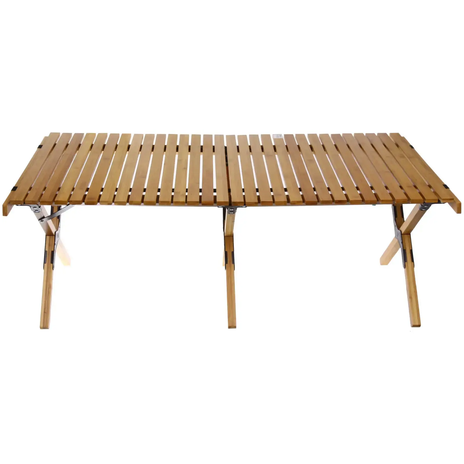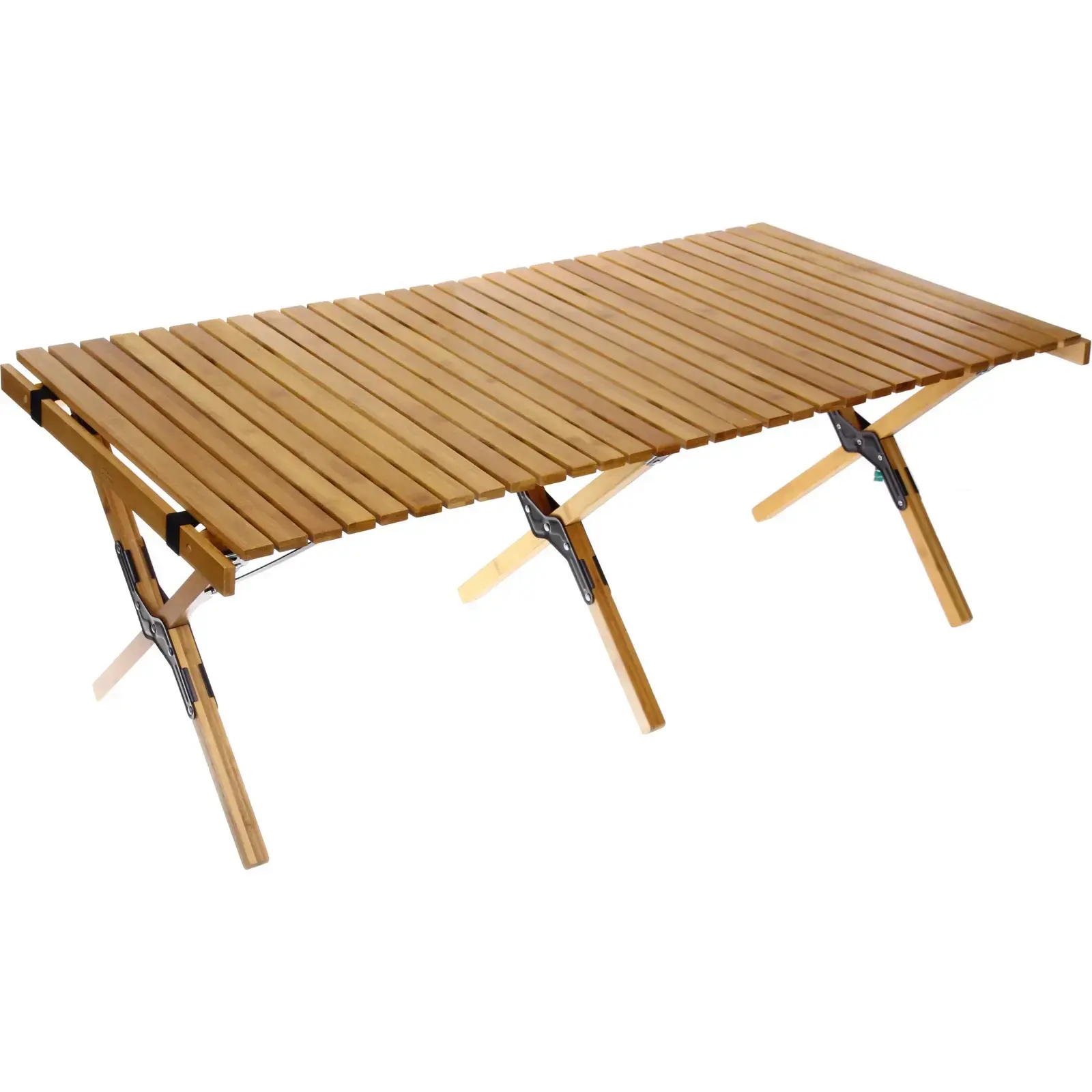 Размеры стола составляют 120х60 см, что обеспечивает достаточно места для еды и напитков. Столешница состоит из параллельных деревянных планок, что придает ему стильный и естественный вид. Ножки стола выполнены из дерева и дополнены металлическими креплениями для устойчивости. Этот стол станет отличным дополнением к вашему активному отдыху на свежем воздухе!