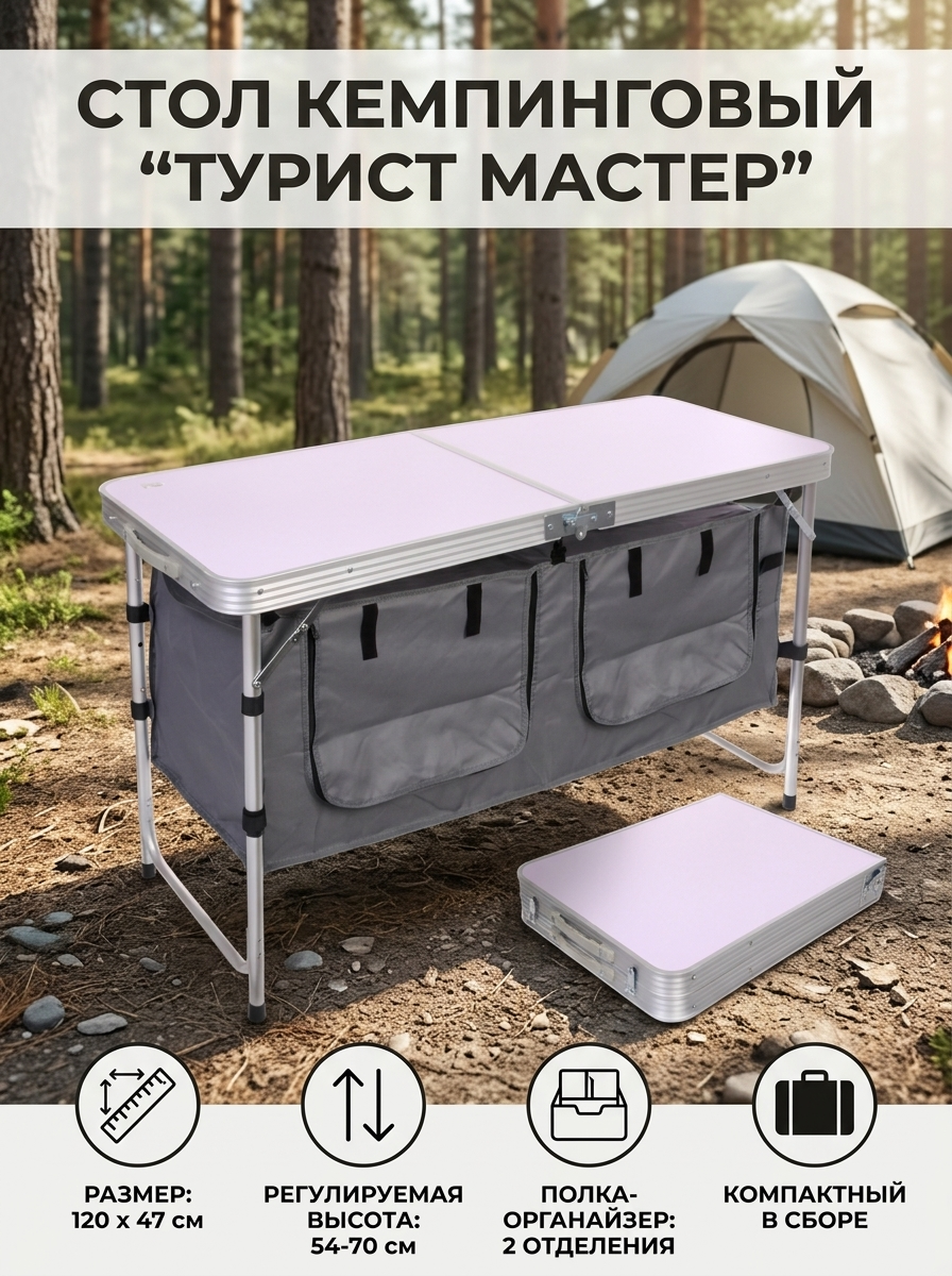 Складной стол с практичными карманами создан для комфортного использования в походах, пикниках и кемпинге. Легко трансформируется из компактного чехла в полноценную рабочую поверхность за 30 секунд.