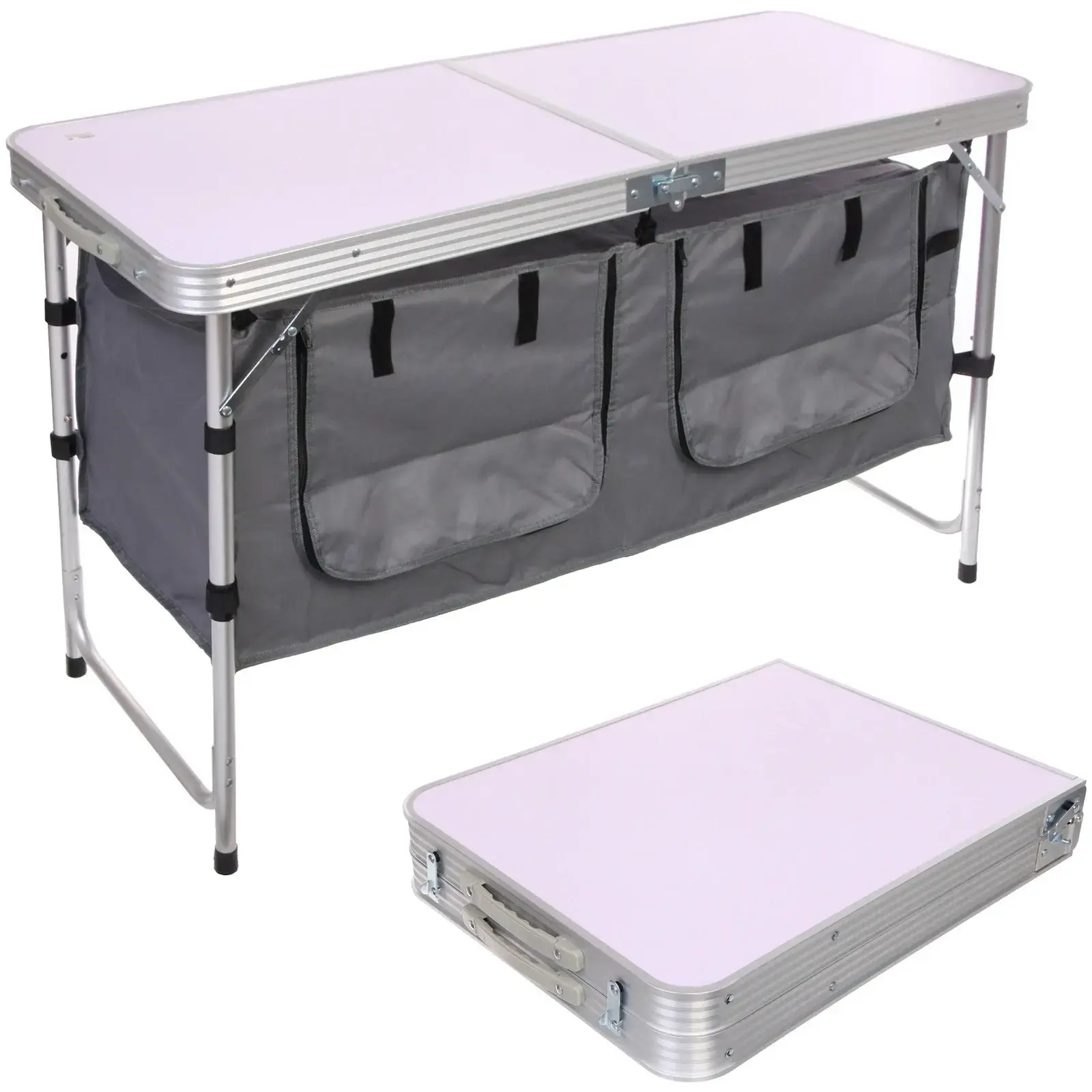 Стол складной для кемпинга с 2 карманами, 120x47x54-70 см, металл/пластик/текстиль, переносной