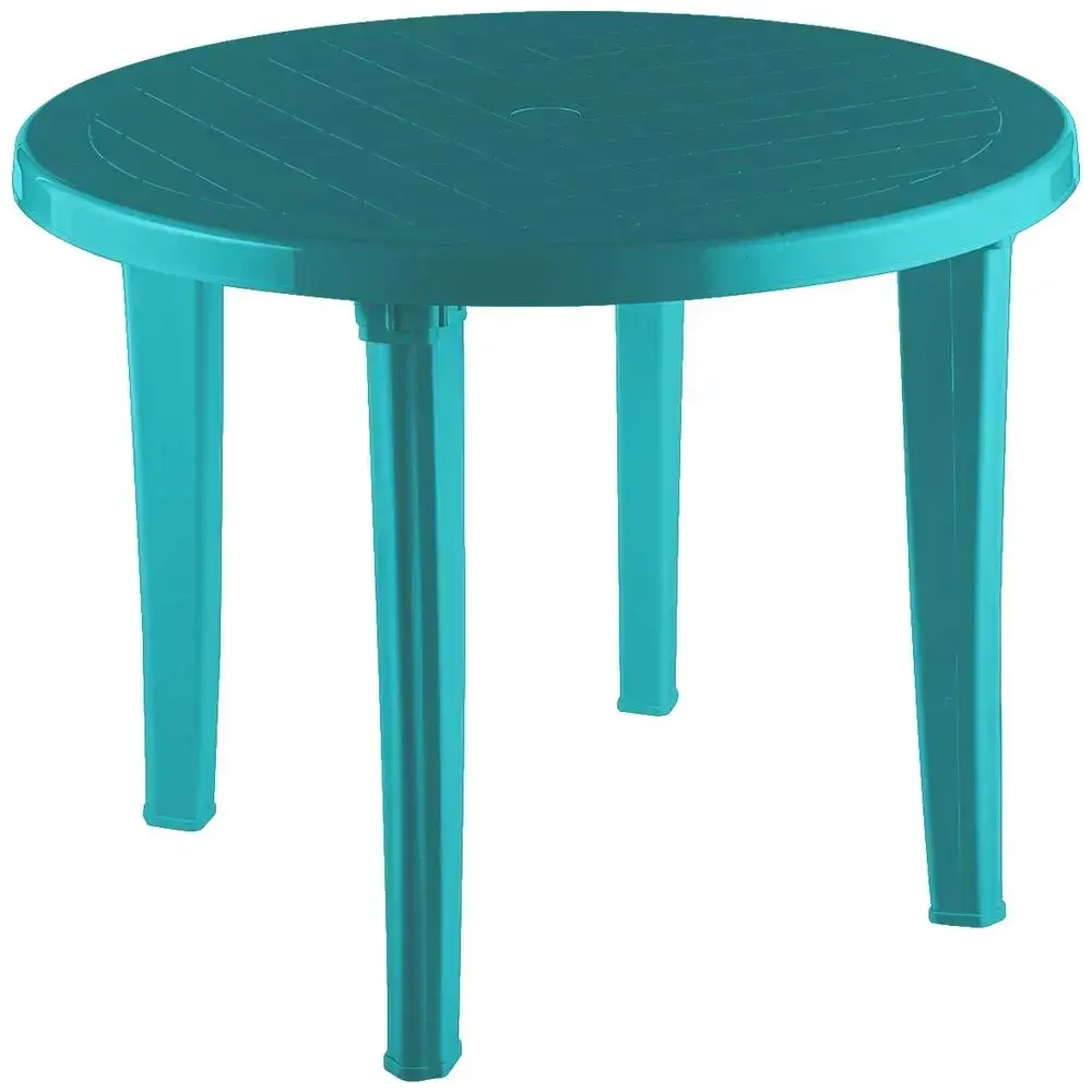 Стол круглый пластиковый для сада, бирюзовый, устойчивые ножки, 95х74 см