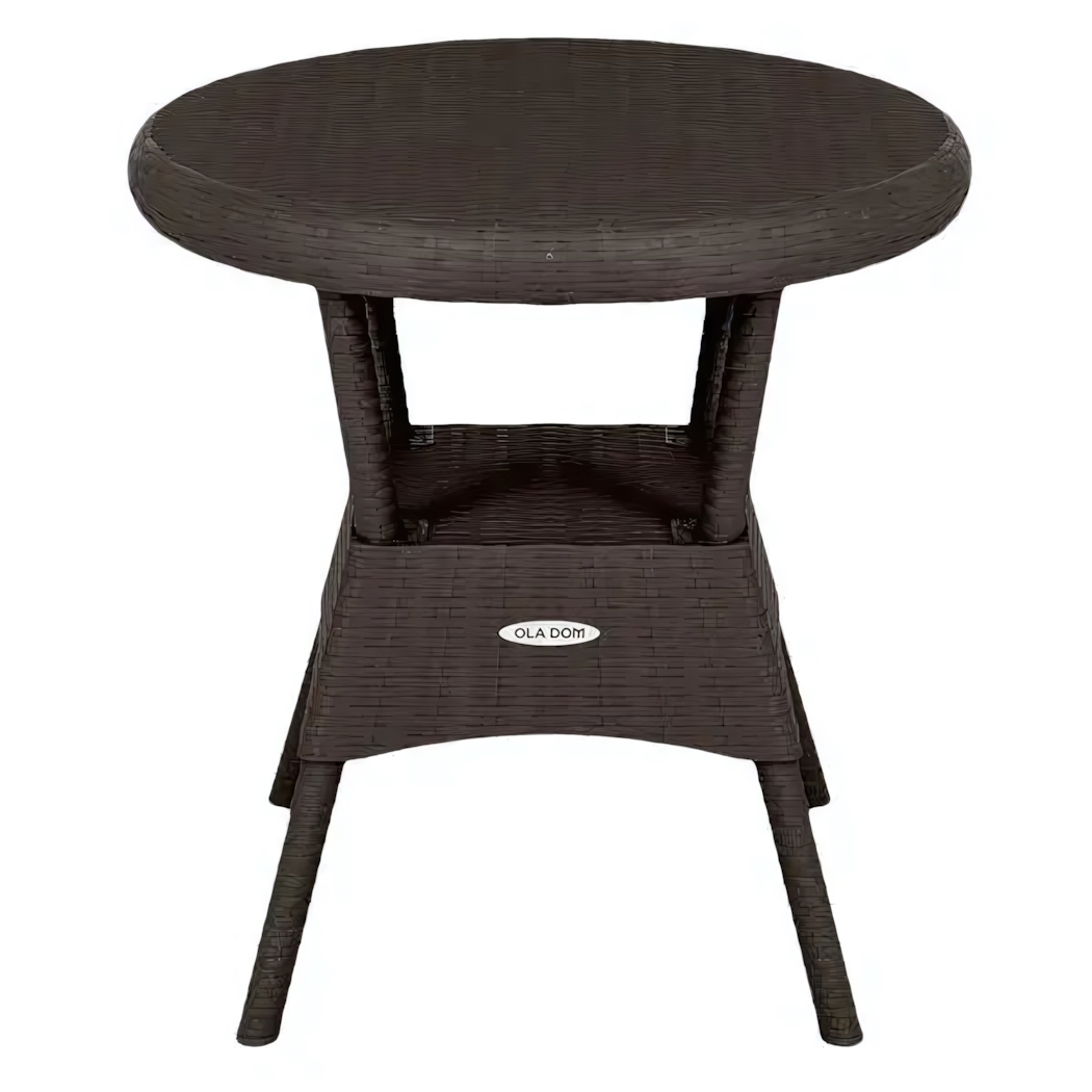 Стол круглый садовый из искусственного ротанга Ola Dom, 70х72см, коричневый, с нижней полкой