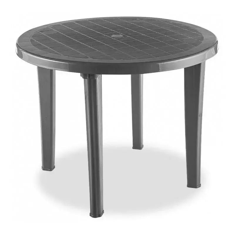 Круглый пластиковый стол серого цвета — идеальное решение для террас, дач и садовых участков. Устойчивая конструкция с четырьмя ножками и текстурированной поверхностью обеспечивает безопасность и комфорт во время использования.