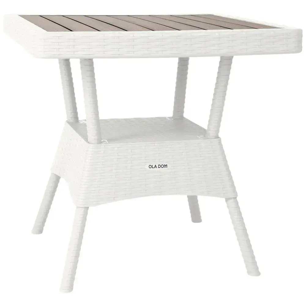 Стол квадратный садовый «RATTAN» Ola Dom, белый, 75.5х74.5см, двухуровневый, устойчивые ножки