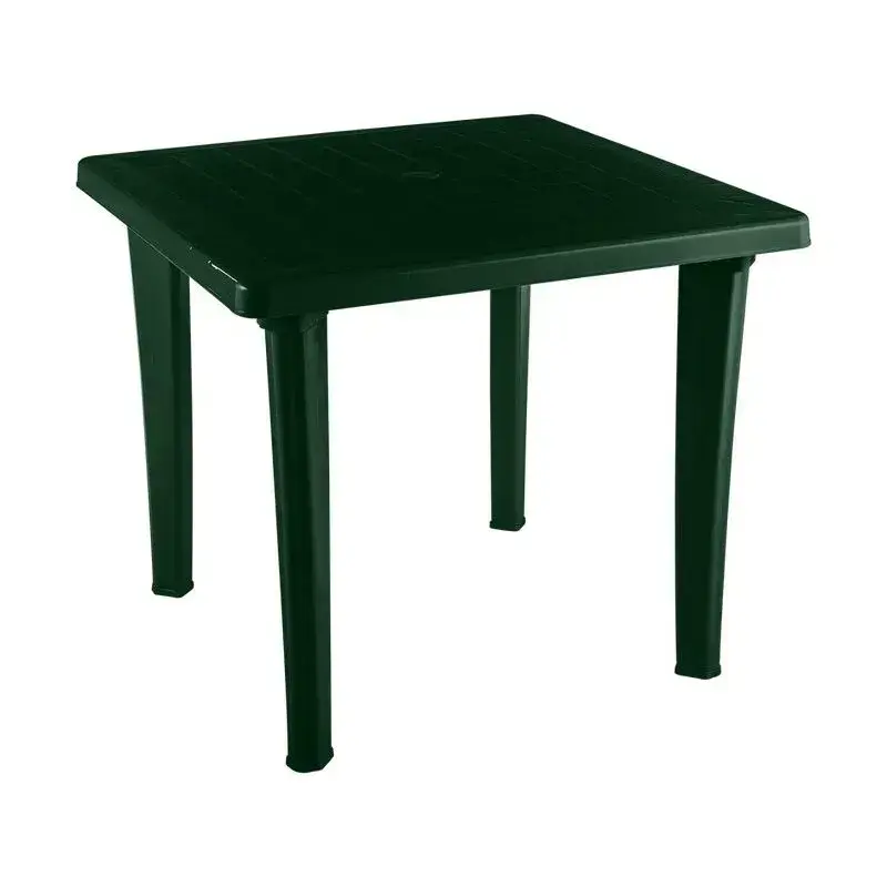 Темно-зеленый цвет органично вписывается в природный ландшафт, а классическая квадратная форма создает эргономичное пространство для сервировки. Усиленные ножки с антискользящими накладками обеспечивают устойчивость даже на неровной поверхности.