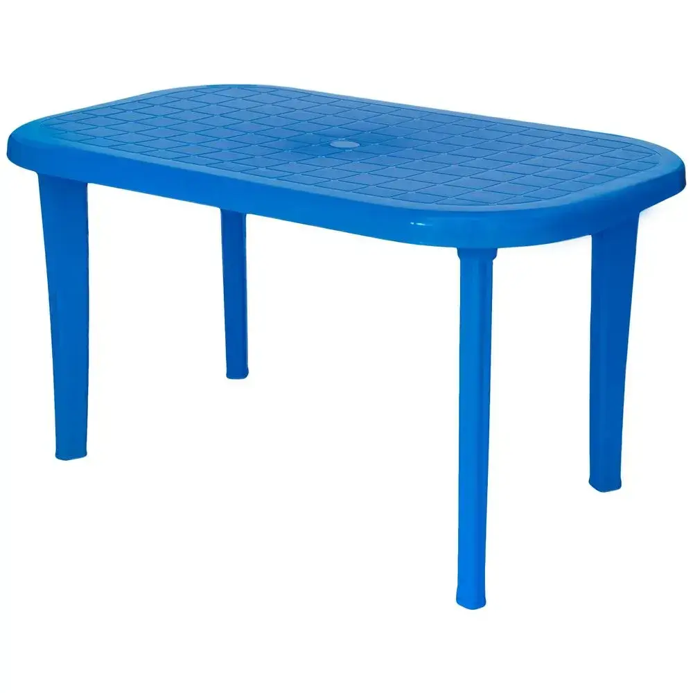 Идеальное решение для обустройства уютной зоны на свежем воздухе! Стол из прочного пластика выдерживает перепады температур и воздействие влаги, сохраняя безупречный вид долгие годы. Яркий синий цвет создает праздничное настроение, а эргономичная форма гарантирует удобство использования.
