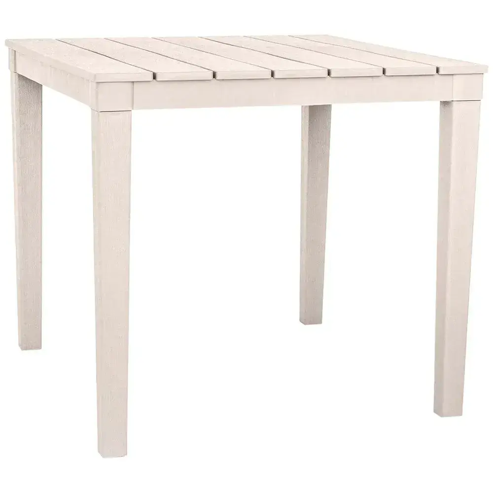 Квадратная столешница 80х80 см вмещает до 4 человек, сохраняя компактность размещения. Материал устойчив к влаге и ультрафиолету — стол сохранит первоначальный вид даже при активной эксплуатации.
