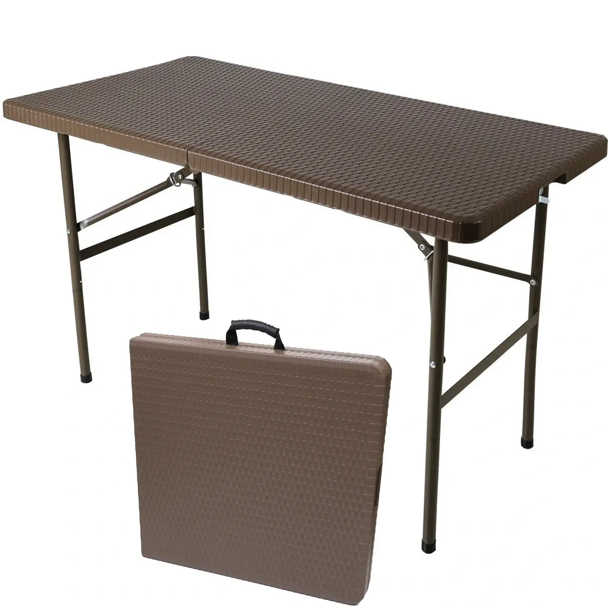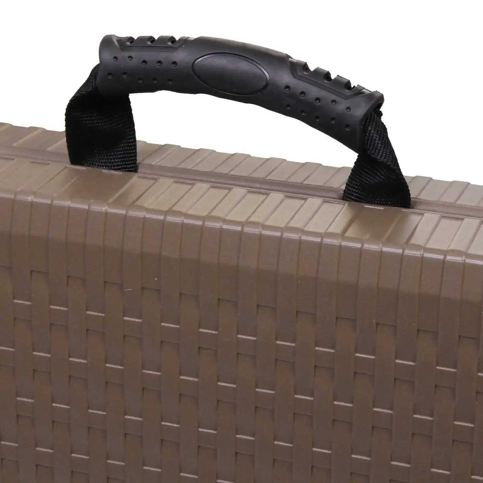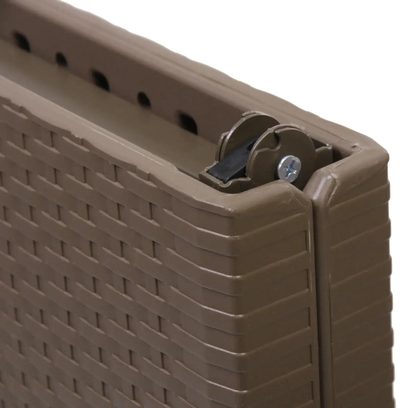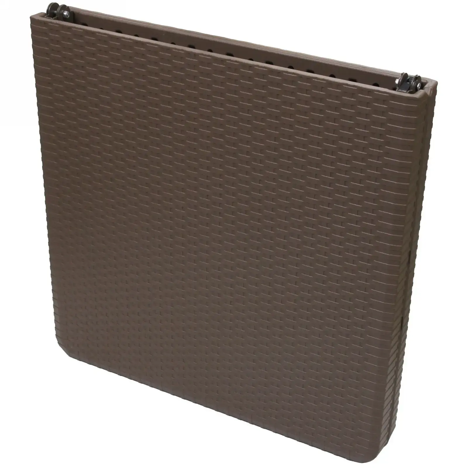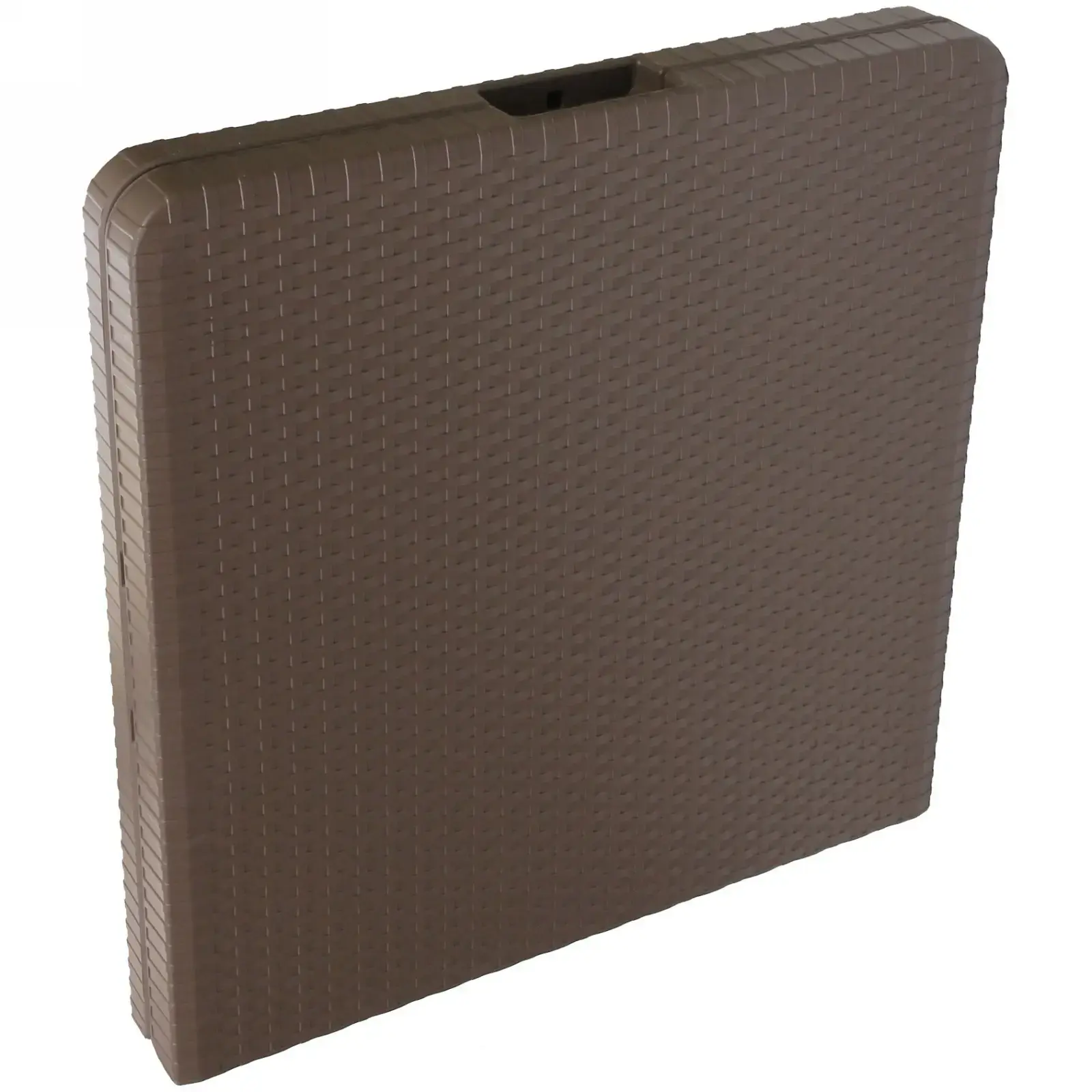Размеры стола составляют 122х60х74 см, что делает его достаточно просторным для размещения еды и напитков. Коричневый цвет и текстурированная поверхность, напоминающая плетение, придают столу стильный вид, который отлично впишется в любой интерьер или экстерьер. Стол выполнен из качественных материалов: столешница из пластика и ножки из металла, что гарантирует долговечность и надежность.