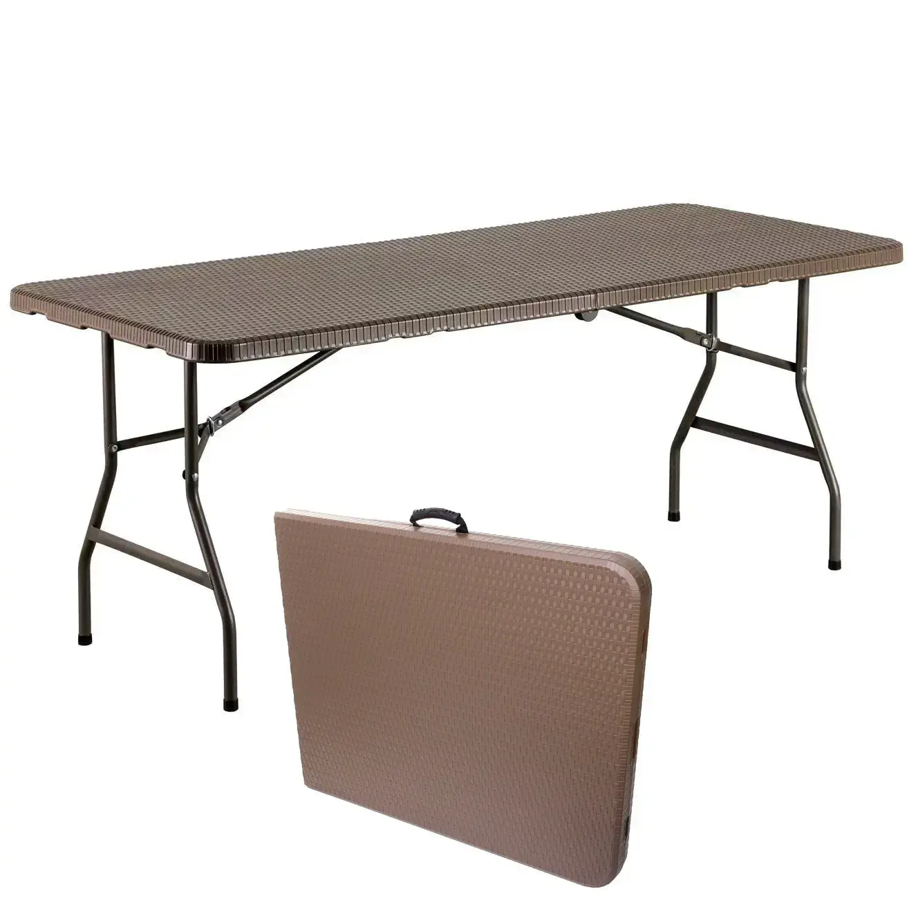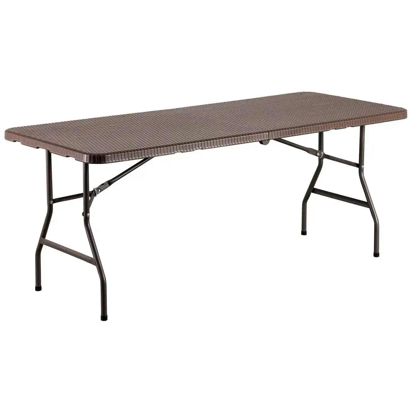 Размеры стола составляют 180х75х74 см, что позволяет разместить на нем достаточно предметов для комфортного отдыха. Коричневый цвет и текстура, имитирующая ротанг, делают его стильным элементом вашего интерьера или экстерьера. Стол легко чистится и не требует особого ухода, что делает его идеальным выбором для активного использования.