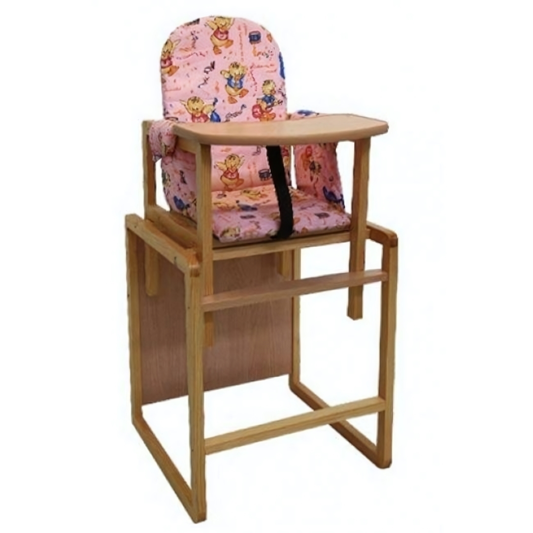 Стульчик-трансформер для кормления «Алекс» розовый, массив сосны, съемные подлокотники, пояс безопасности