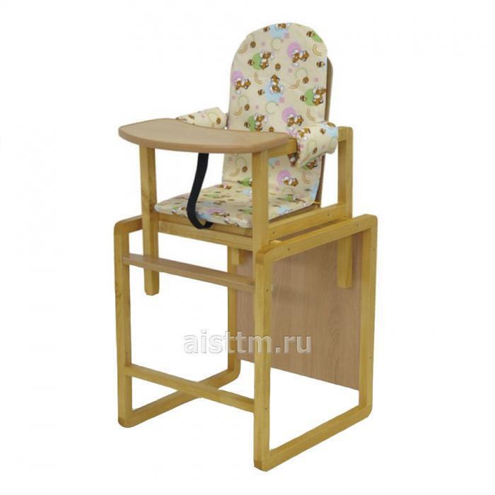 Экологичная древесина с защитным покрытием устойчива к влаге и царапинам. Съёмные текстильные элементы из гипоаллергенной ткани легко очищаются влажной салфеткой. Компактные габариты позволяют разместить стульчик даже в небольшой кухне.