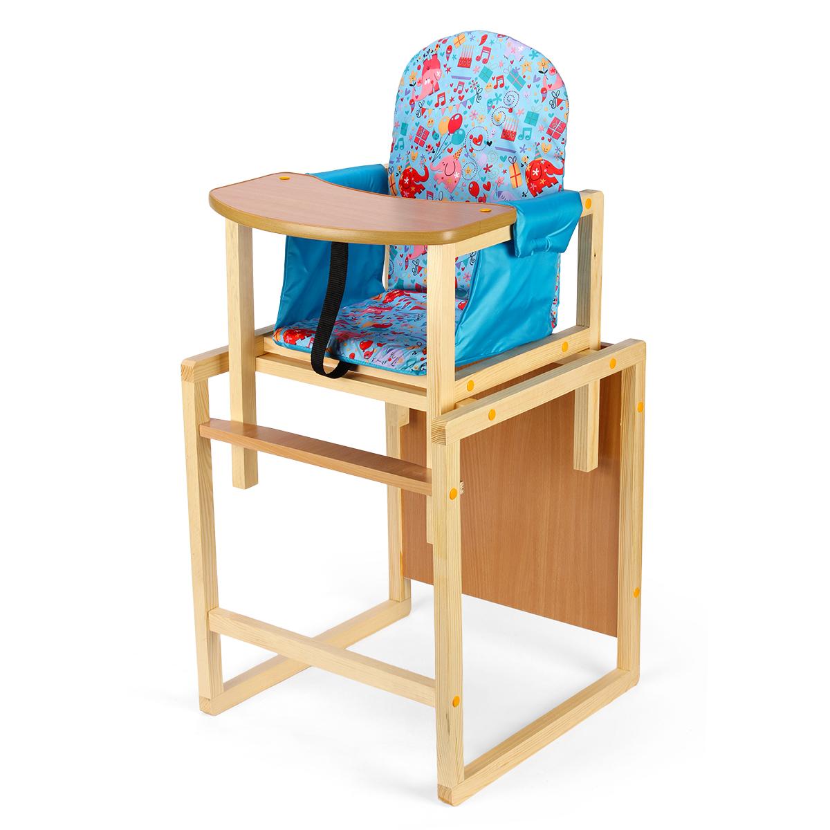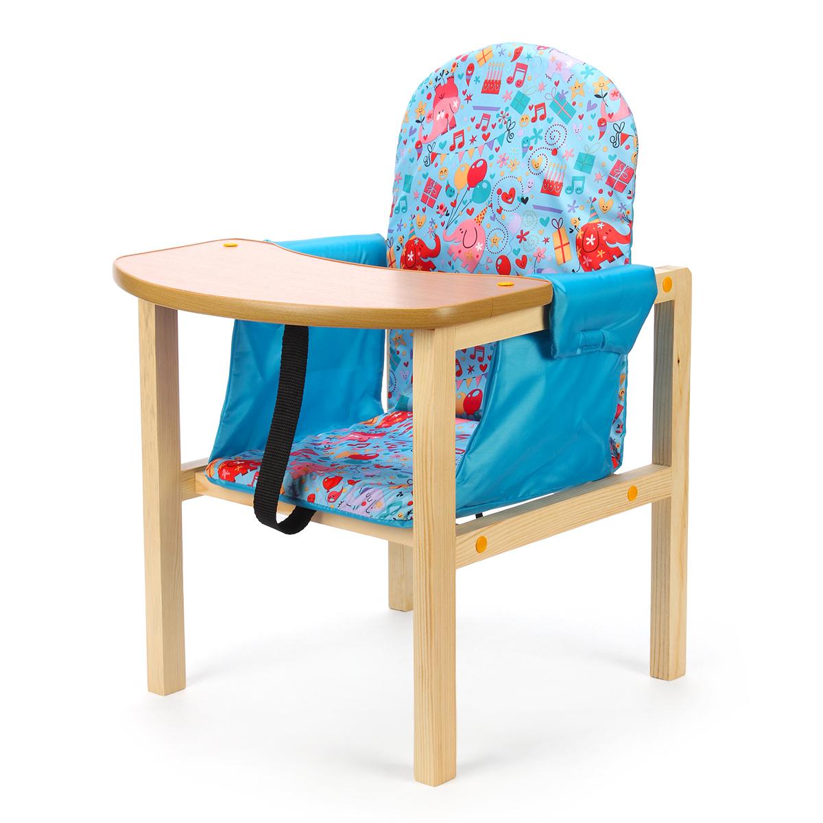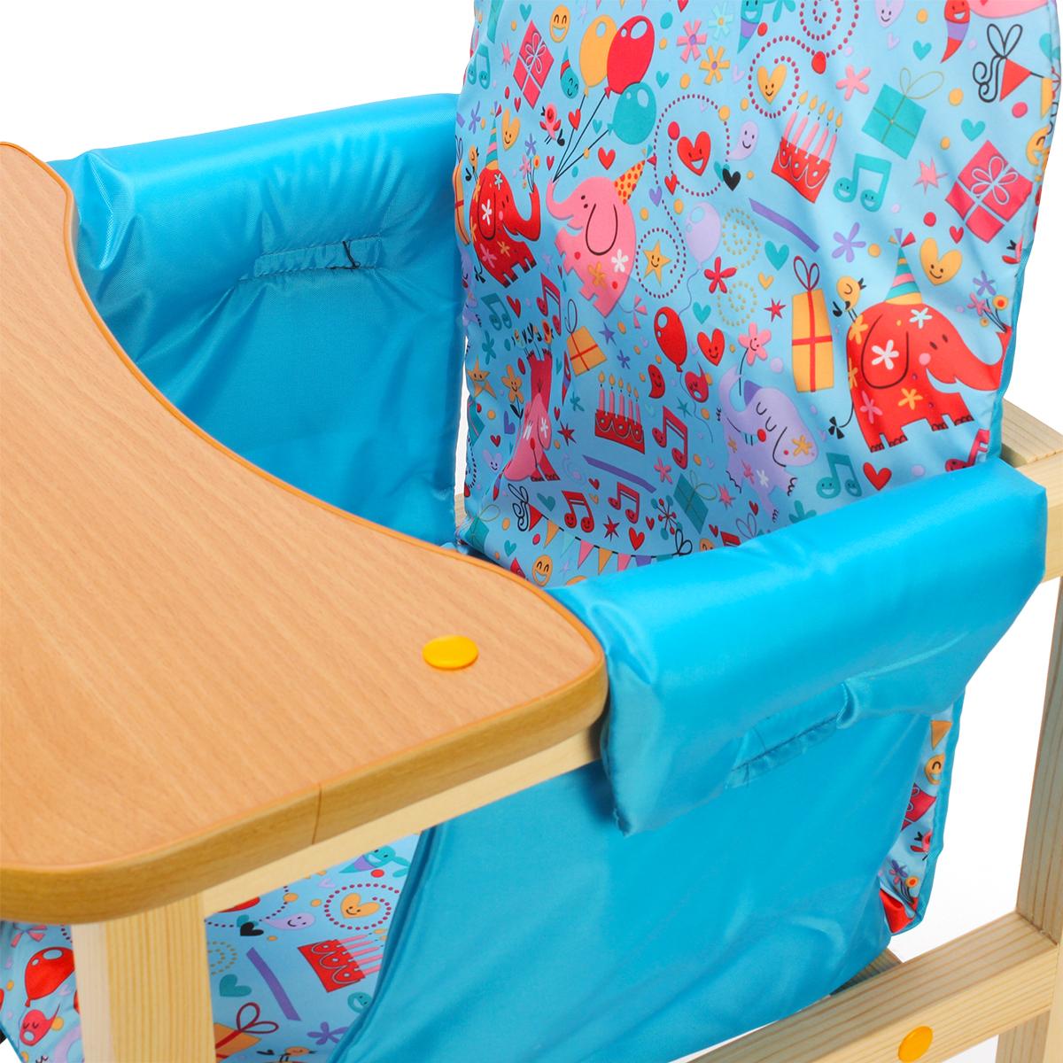 Стол-стул для кормления «Бутуз» голубой, регулируемая конструкция, съемная столешница, дерево/ткань