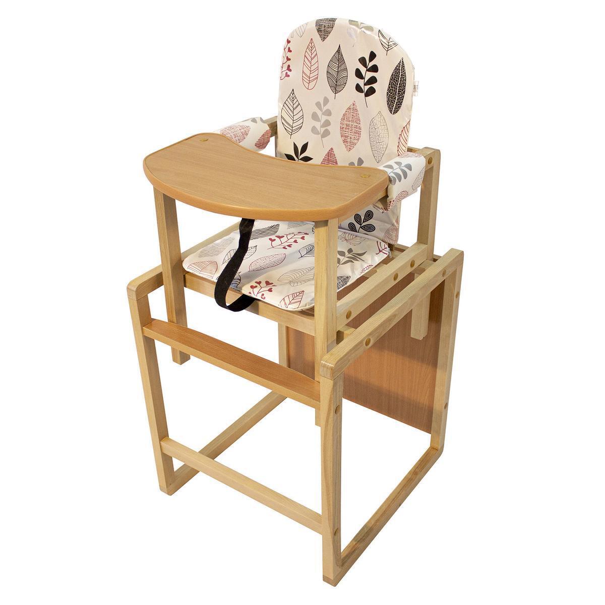 Деревянный стульчик для кормления с ортопедической спинкой и стильным дизайном станет надежным помощником в период взросления вашего малыша. Мягкий текстиль с успокаивающим рисунком в виде листьев создает атмосферу уюта, а продуманная конструкция гарантирует удобство во время каждого приема пищи.