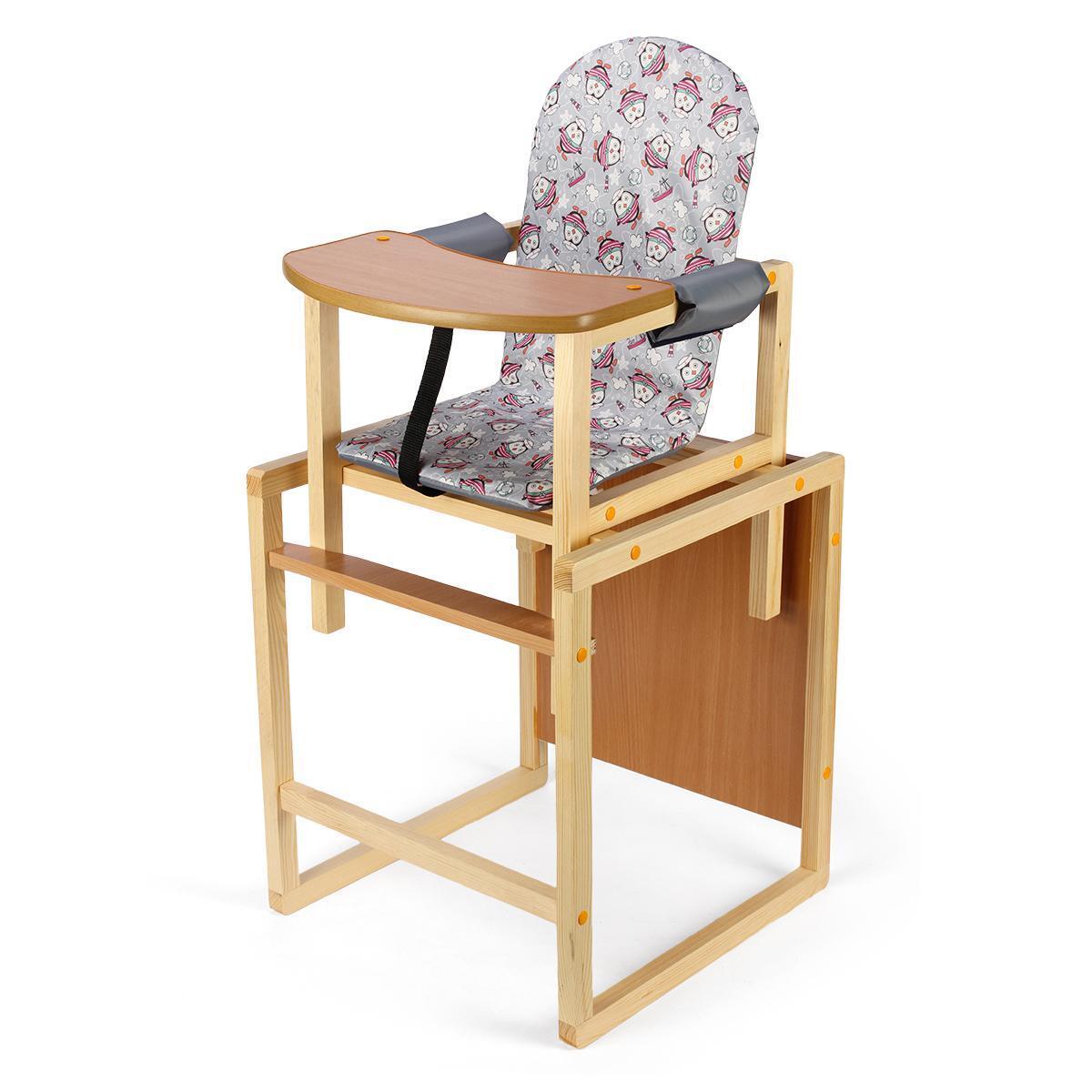 Этот детский стульчик для кормления поможет обеспечить комфорт и безопасность во время еды малышу с первых месяцев жизни. Его надежная деревянная конструкция и мягкая тканевая обивка с ярким мультяшным рисунком создают приятную атмосферу для вашего ребёнка.