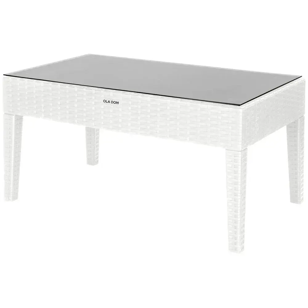 Журнальный столик «RATTAN OLA DOM» сочетает современный дизайн и практичность. Прочная конструкция из морозостойкого пластика с текстурой натурального ротанга дополнит как садовую мебель, так и домашний интерьер. Стеклянная столешница добавляет элегантности, сохраняя функциональность.