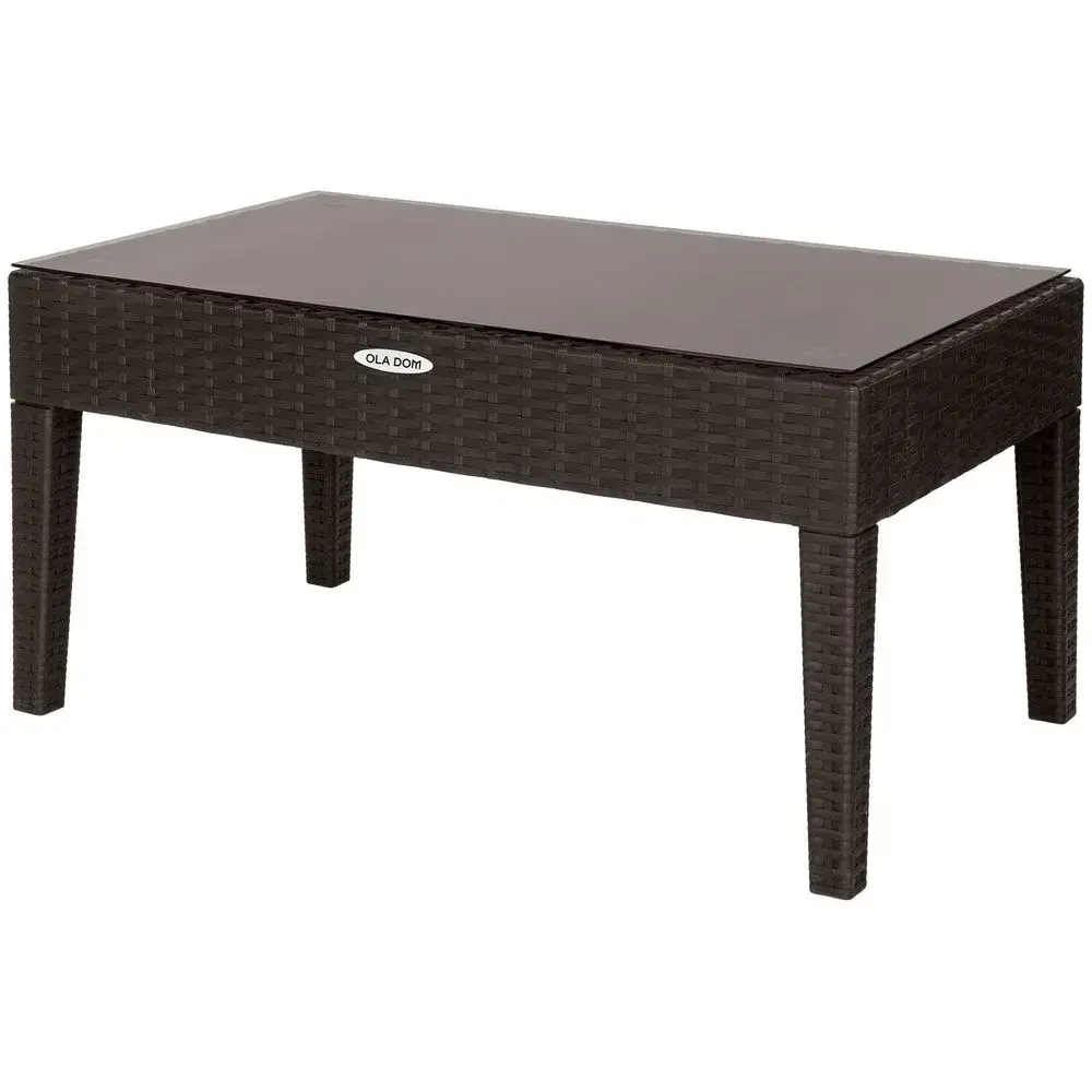 Столик журнальный "RATTAN OLA DOM" со стеклом, коричневый, 920х450мм