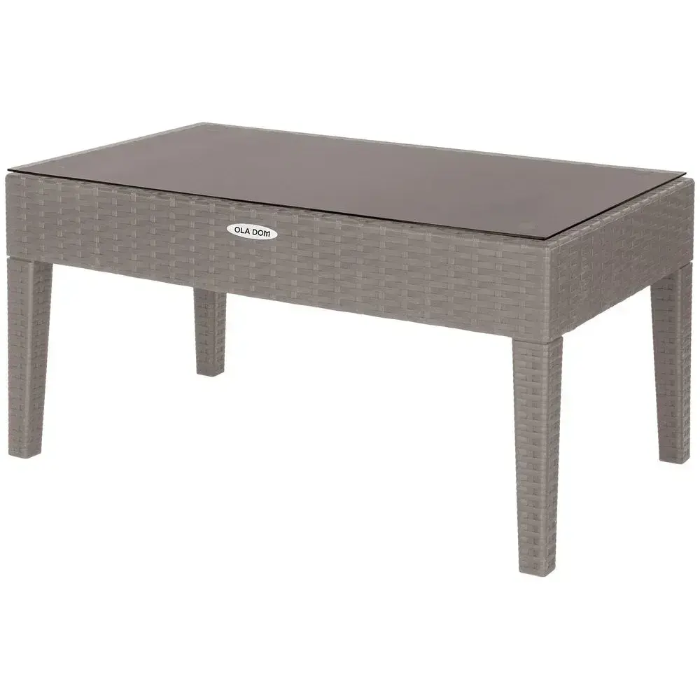 Журнальный столик «Rattan Ola Dom» со стеклянной столешницей, пластик под rattan, серый, 92х45 см