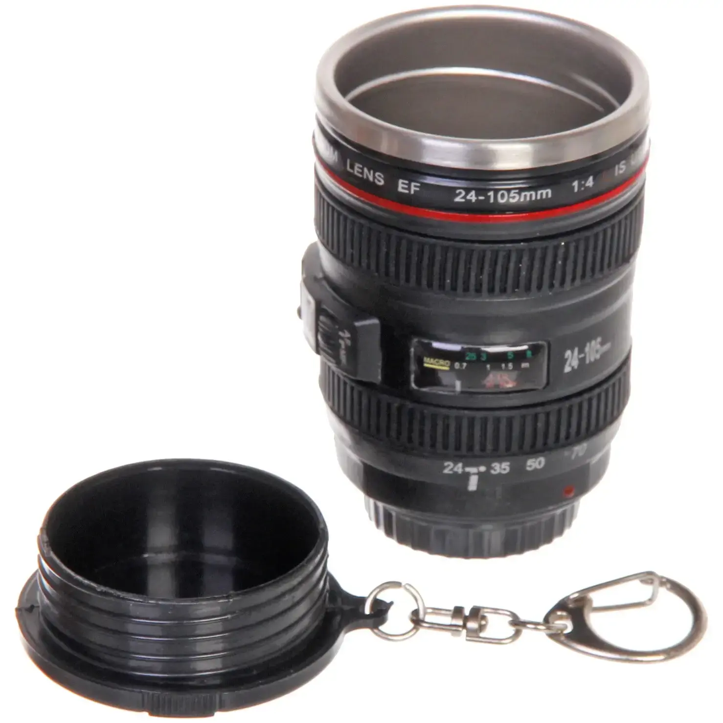 Стопка имеет цилиндрическую форму и выполнена в черном цвете с металлическими и красными элементами, что придаёт ей стильный вид. Она станет отличным подарком для фотографов и любителей природы. Не упустите возможность сделать ваши выезды на природу более комфортными и стильными с помощью стопки «Объектив»!