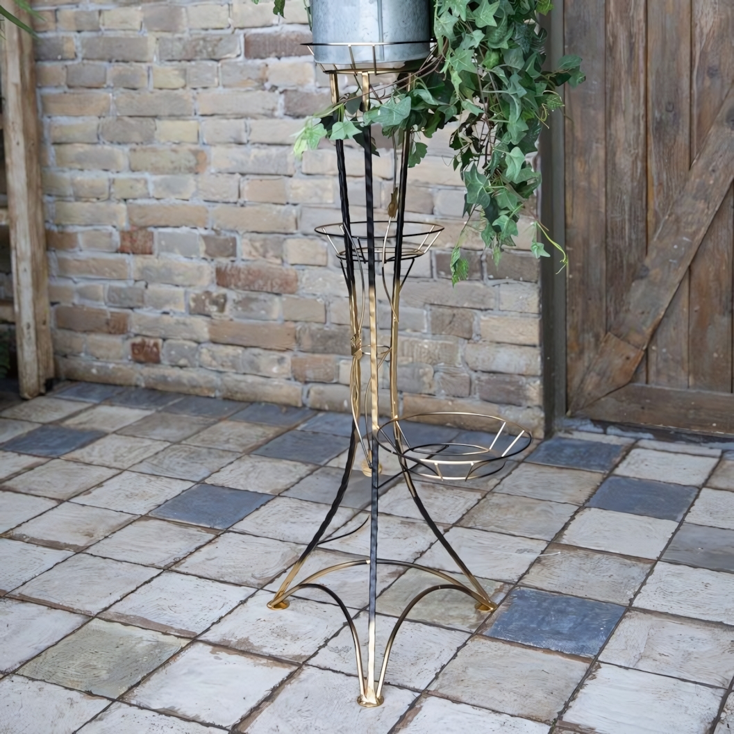 Стойка не требует сложного ухода — достаточно периодически протирать поверхность влажной тканью. Цвет «антик-золото» гармонично сочетается с классическими и современными интерьерами, подчеркивая красоту растений и добавляя интерьеру выразительности.