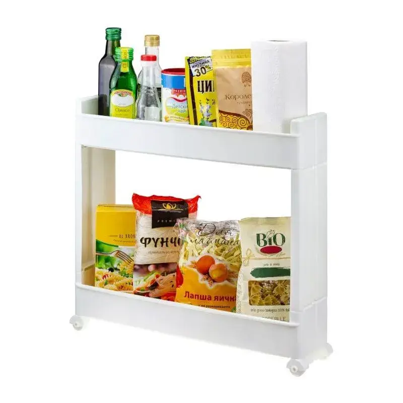Практичная пластиковая стойка на колесах — идеальное решение для организации пространства на кухне, в ванной или гараже. Вращающиеся ролики обеспечивают легкое перемещение даже с полной загрузкой, а прочная конструкция выдерживает вес до 15 кг на секцию.