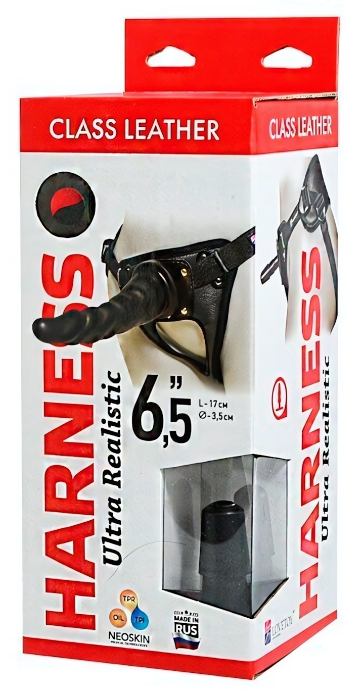 Страпон Harness Ultra Realistic, трусики кожаные, насадка Neoskin 17см, черный