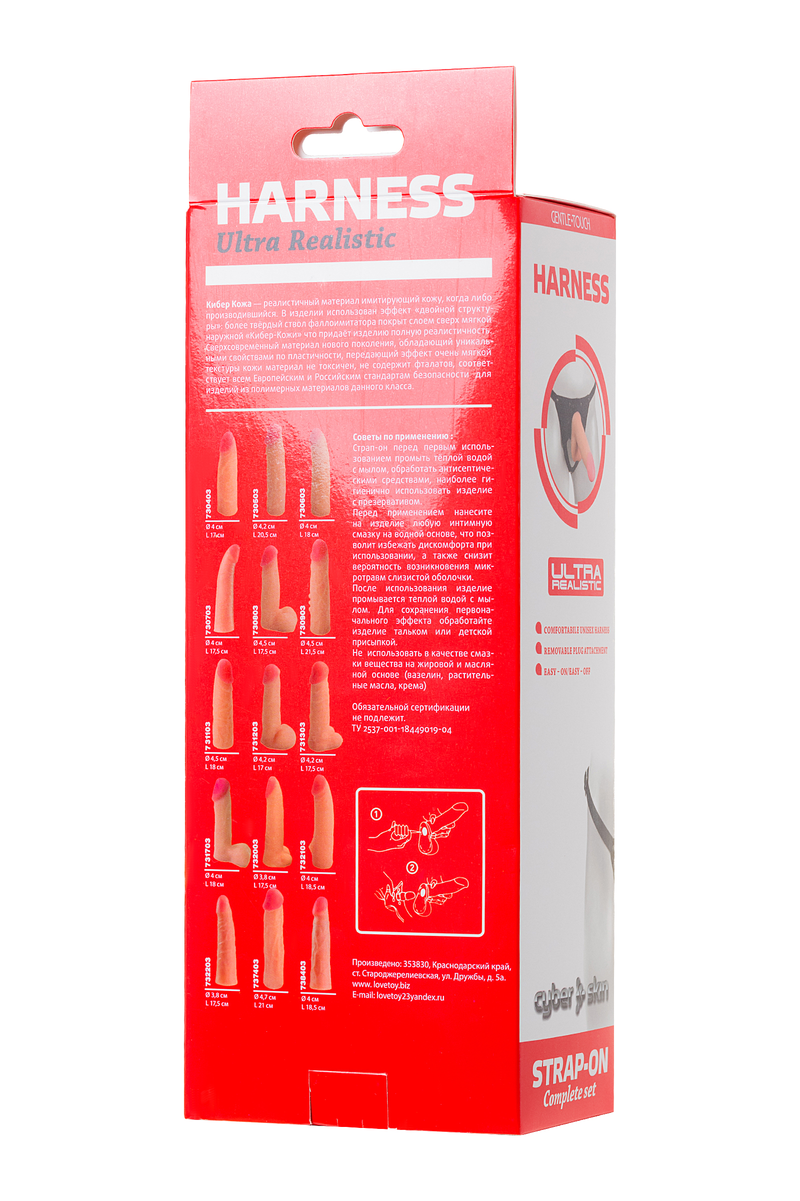 Вы получаете готовый к использованию набор: пояс-основу чёрного цвета с металлической фурнитурой и насадку телесного цвета с рельефной поверхностью. Всё упаковано в жёсткую коробку для надёжного хранения.