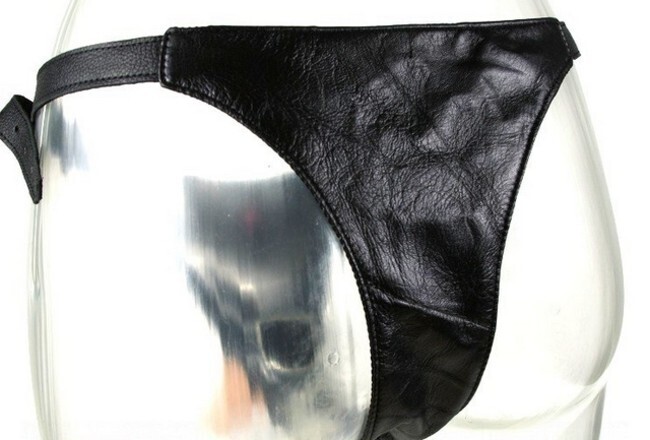 Страпон на кожаных трусиках с фаллоимитатором 17 см, черный/телесный, универсальный размер