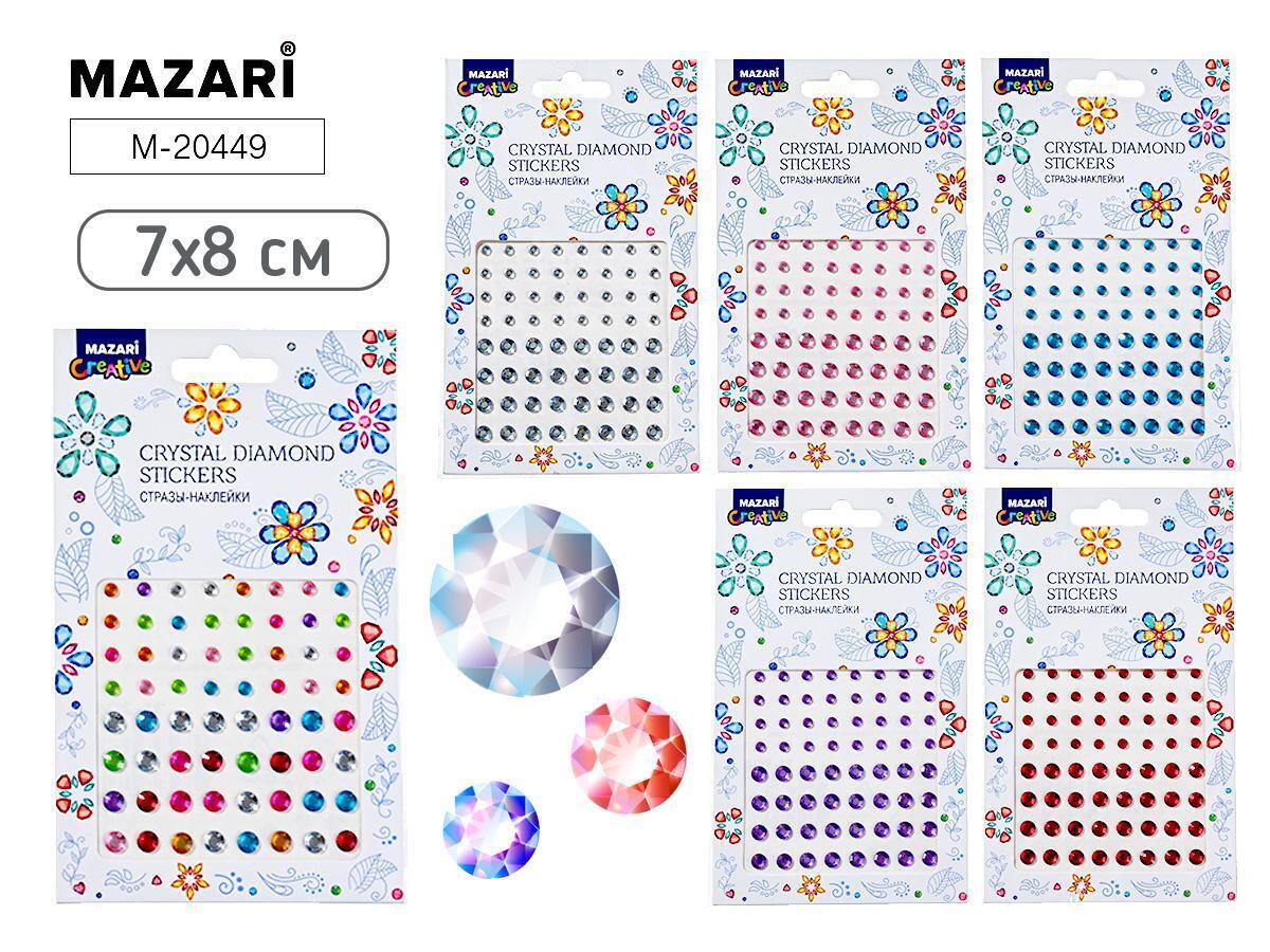 Стразы‑наклейки пластик 7×8 см, дизайн в ассортименте, 6 ярких вариантов, блестящая поверхность, Mazari