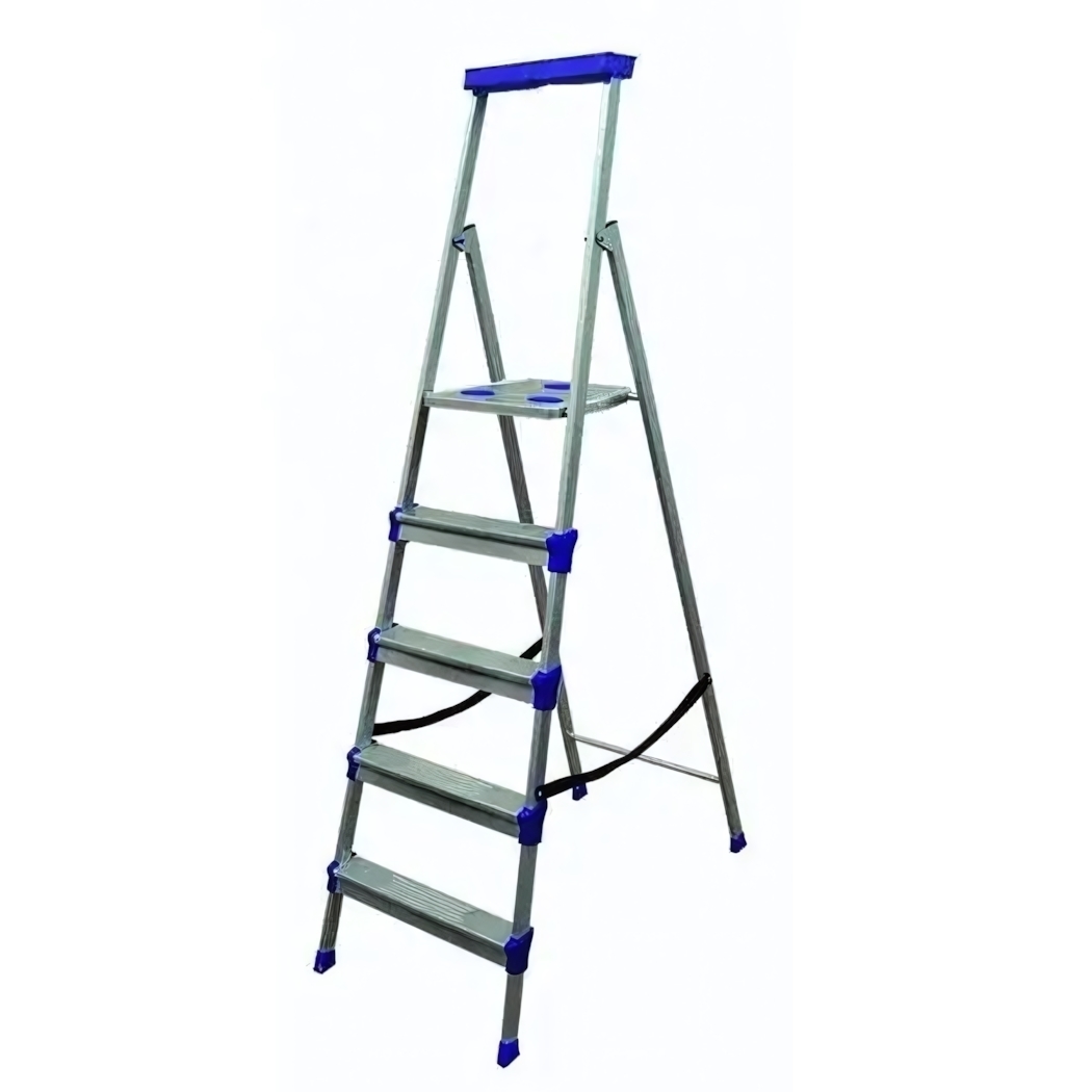 Прочная 5-ступенчатая стремянка с усиленной конструкцией обеспечивает безопасность и комфорт при работе на высоте. Широкая верхняя площадка с противоскользящими элементами создает удобное рабочее пространство для домашнего мастера.