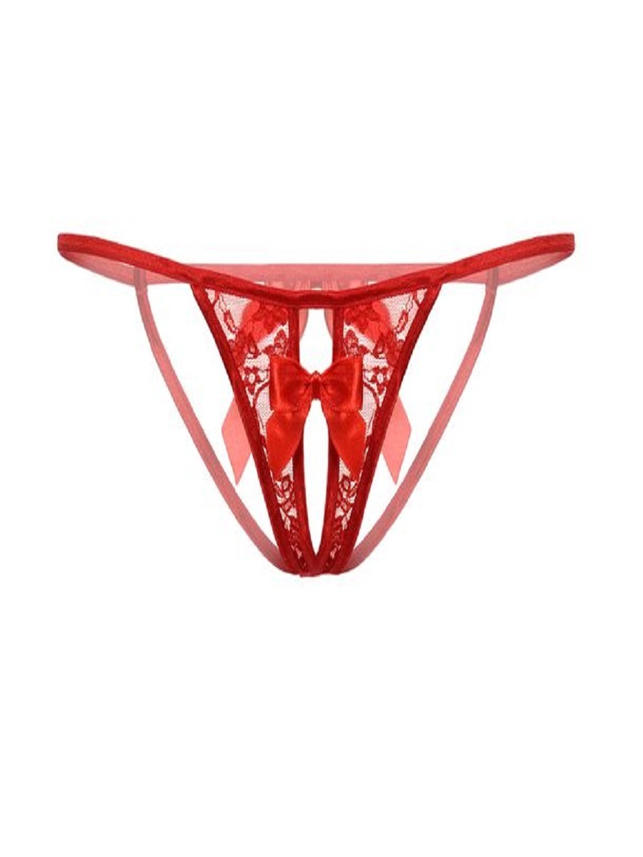 Стринги кружевные открытые с атласным бантом, красные, размер S/L, комфортная посадка