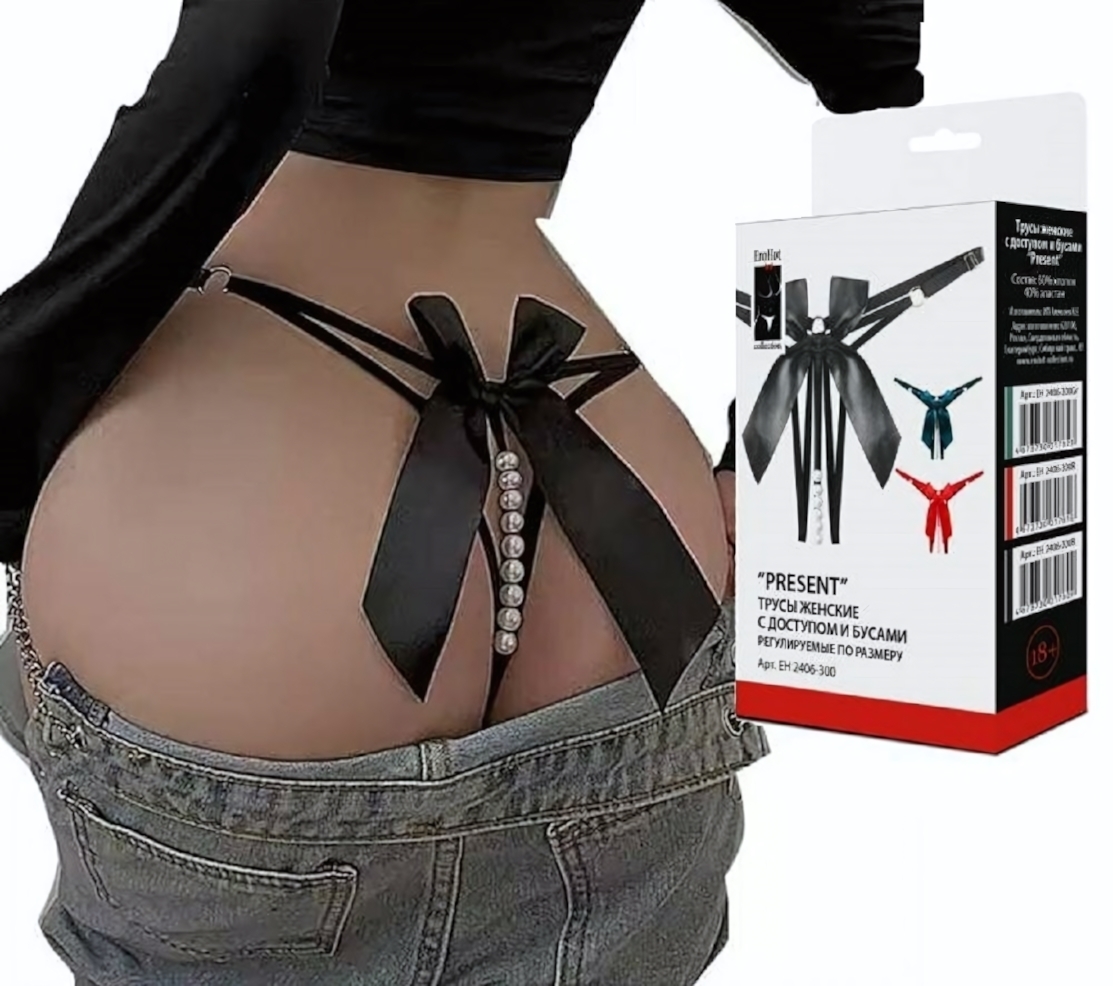 Эротические стринги с регулируемыми лямками созданы для тех, кто ценит комфорт и хочет подчеркнуть свою индивидуальность. Мягкие атласные ленты и деликатные бусины добавят нотку игривости в ваш образ, а элегантный бантик на спине станет изюминкой комплекта.