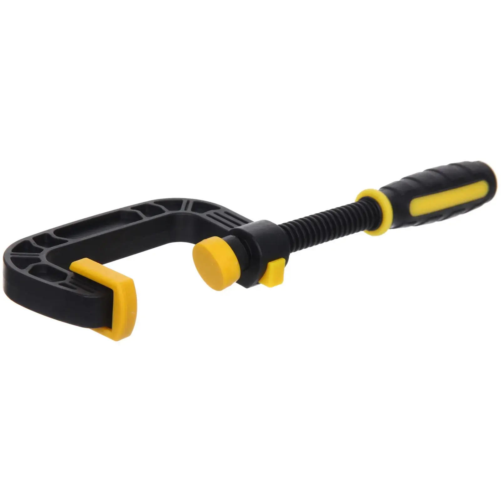 Струбцина имеет размеры 2" (50 мм) и выполнена из качественного пластика и стали. Ее конструкция включает основную раму и подвижный элемент с зажимом, что позволяет легко изменять расстояние между губками инструмента. Это делает струбцину идеальным выбором для тех, кто ищет надежный и эффективный инструмент для работы с различными материалами.