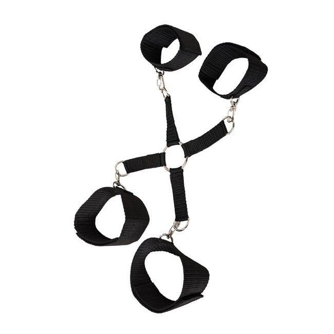 Сцепка-фиксатор рук и ног в черном цвете — это идеальное решение для тех, кто ищет новые ощущения и хочет добавить элемент игры в свою интимную жизнь. Этот аксессуар, выполненный из 100% полиэстера и металла, обеспечивает надежную фиксацию и комфорт во время использования. Он подходит как для мужчин, так и для женщин, что делает его универсальным выбором для пар.