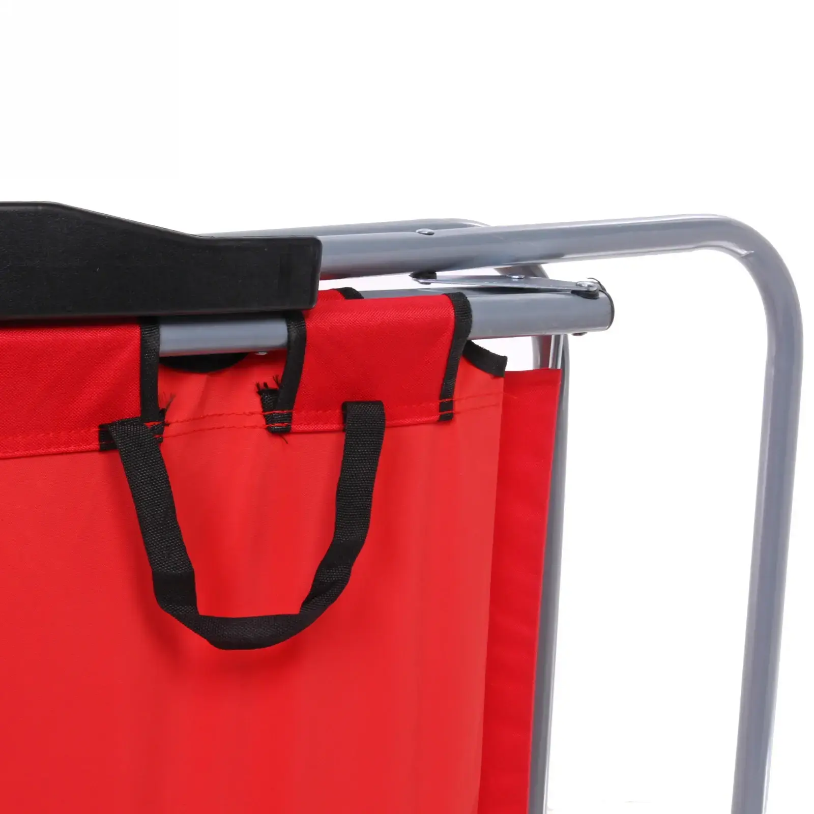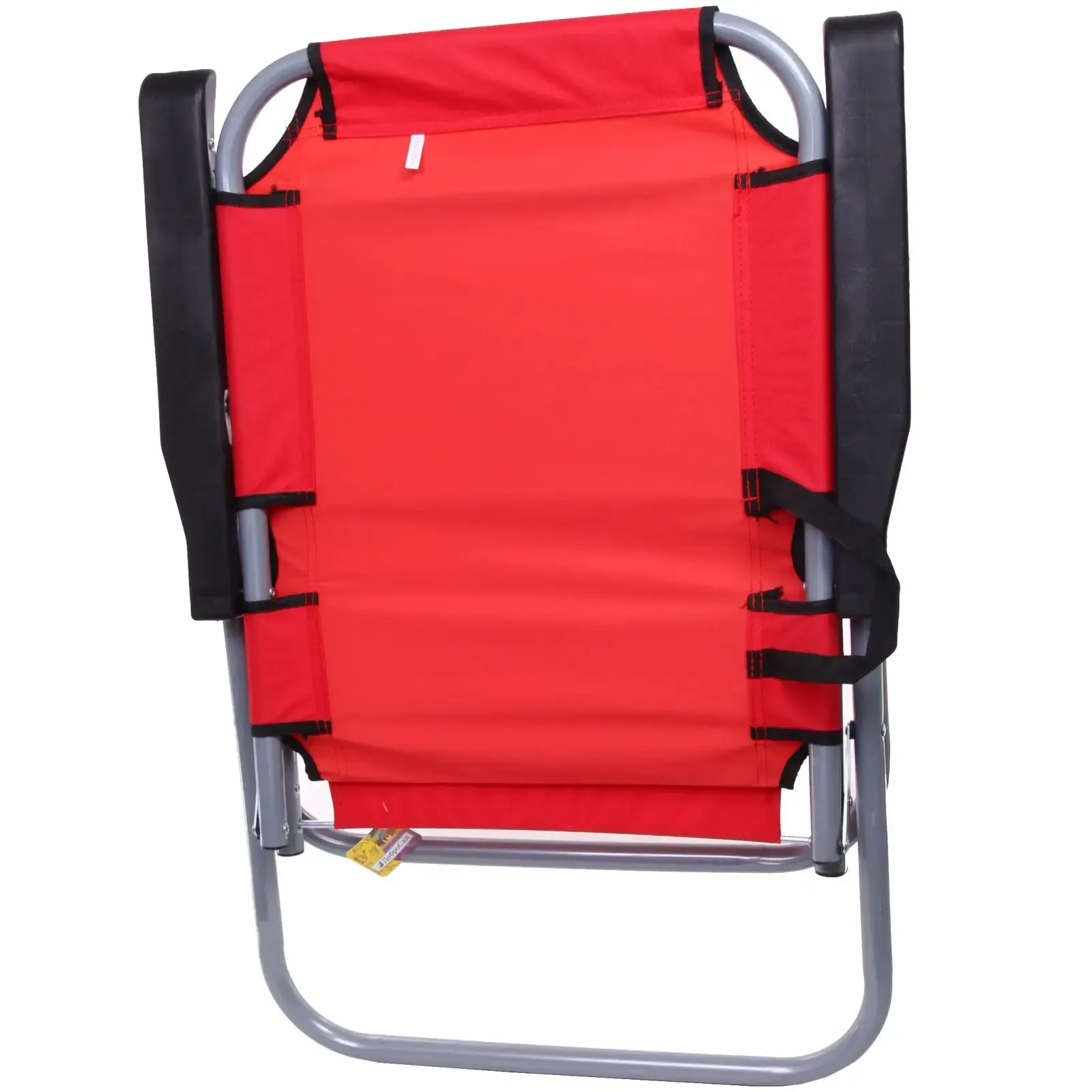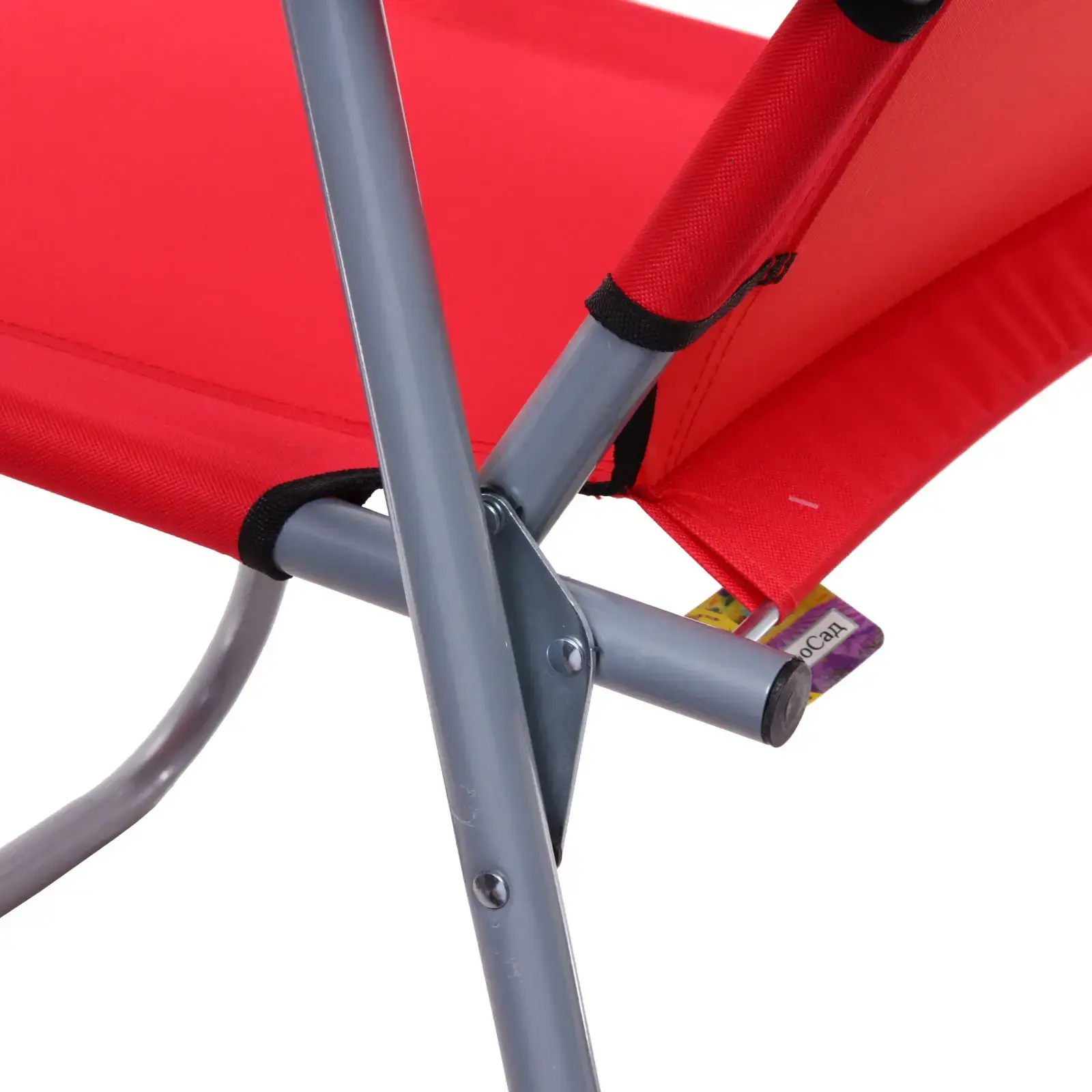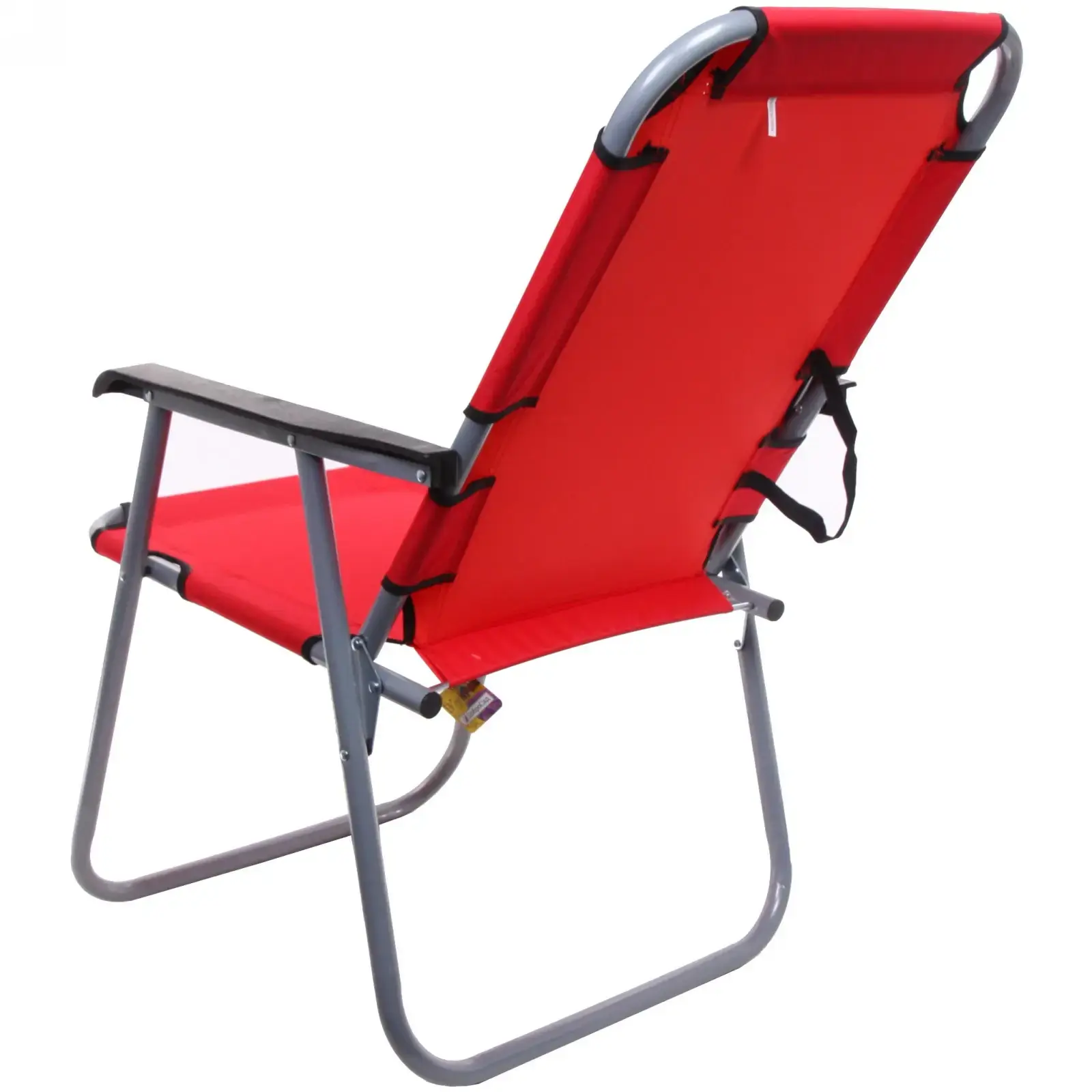 Стул выполнен в классическом красном цвете, который легко впишется в любой интерьер. Обивка стула выполнена из прочного текстиля, а каркас — из металлических труб, окрашенных в серебристый цвет. Подлокотники стула черного цвета с пластиковыми накладками добавляют дополнительный комфорт. Складная конструкция позволяет легко транспортировать и хранить стул, что делает его идеальным выбором для активного образа жизни.
