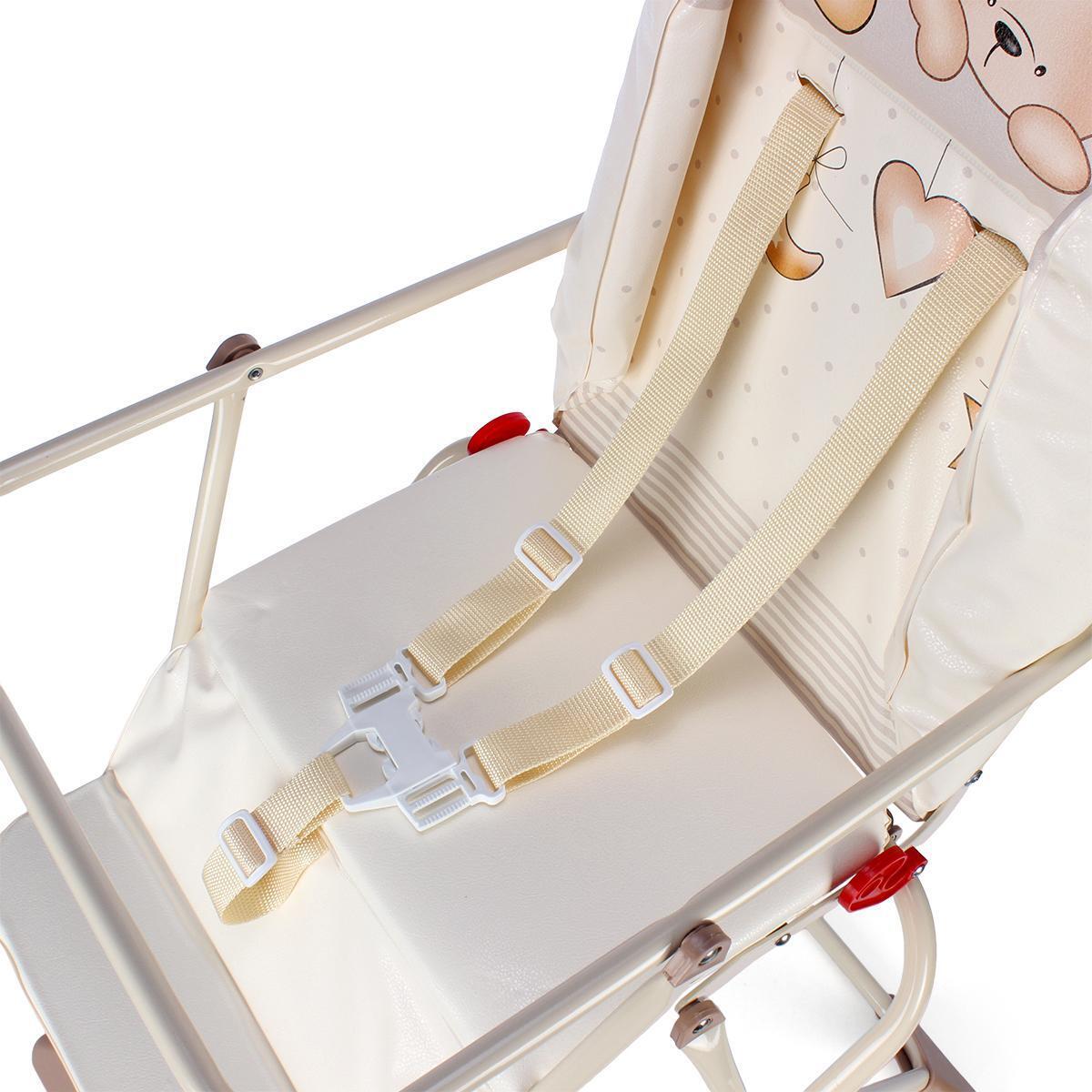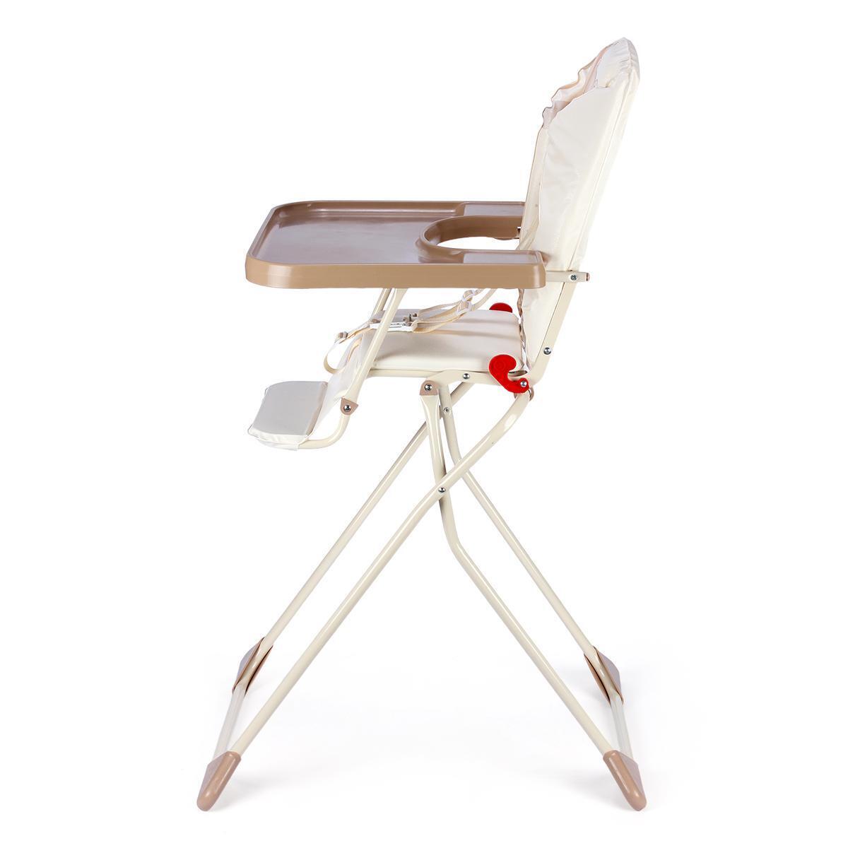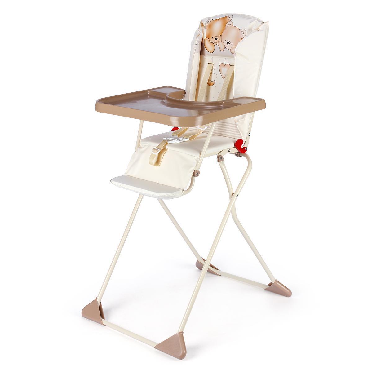 Стульчик для кормления «Компакт» складной с подносом, бежевый, ткань с мишками, металлический каркас